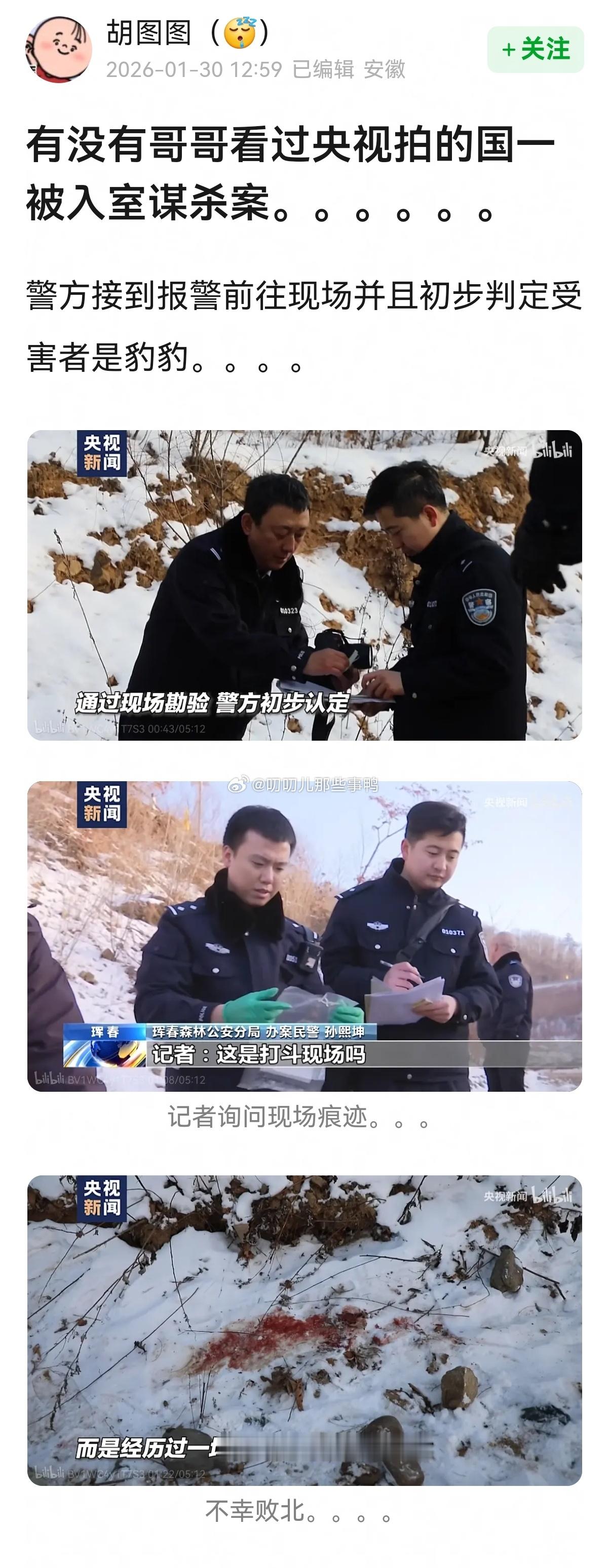 豹豹无妄之灾啊→大家看过央视拍的国一被入室谋杀案吗!!🐆🐆