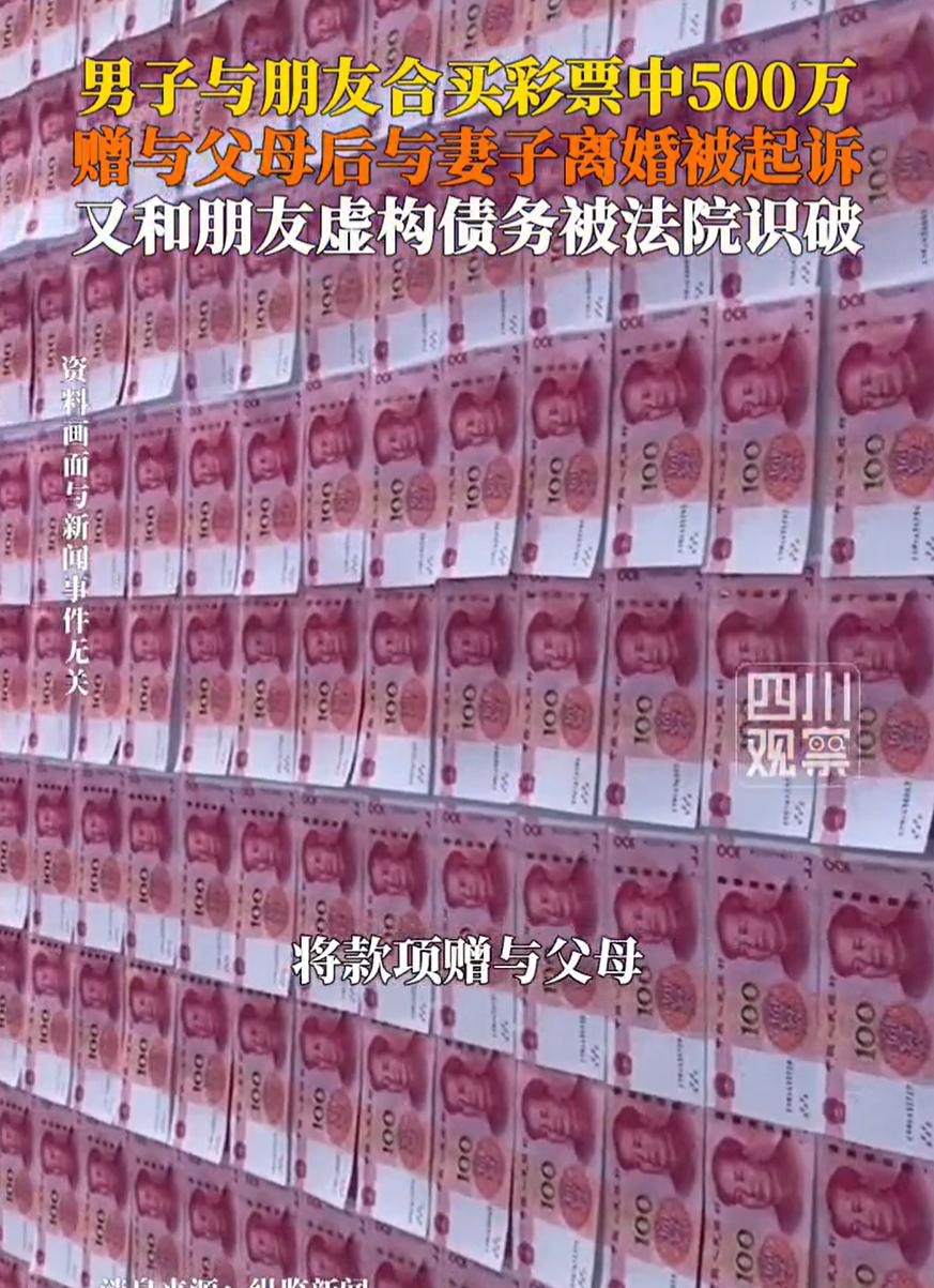 “这也太渣了!”宁夏平罗县,一男子和朋友合买彩票中了500万大奖,本来是个高兴的事,可男子却偷偷把钱转给父母,然后和妻子离婚,但妻子到底还是发现了,起诉要回属于自己的那部分,男子还是不甘心,又自导自演了一出借贷戏码,结果被法院给拆穿了 此前,海某与丁某合伙购买福利彩票中奖,两人各分了200多万,按理说日子直接换挡升级。偏偏他没打算和妻子共享这份好运,悄悄把钱转给父母,又迅速把婚离了,走的是能快就快,能瞒就瞒的路子 他心里盘算得很清楚,钱不在自己名下,婚也离了,前妻就算知道中奖了,也拿他没办法。问题出在一个细节上,夫妻关系存续期间的中奖款,法律上就是共同财产,这个性质不因为转账对象变了就消失 妻子发现真相后直接起诉,法院的态度也很明确,未经配偶同意把大额共同财产赠与父母,侵害了另一方的合法权益,这种赠与无效,该还的要还 可男子心里还是不甘,开始动歪脑筋,拉着当初一起买彩票的朋友演了一出借钱的戏。朋友当原告,他当被告,硬说自己欠了一笔大额借款,目的很直白,把钱说成要还债的,前妻能分到的自然就少了 谁知法官一看材料就觉得不对劲,只有一笔转账,没有借条,没有合同,没有利息约定,时间点又和前面的财产纠纷紧紧挨着,完全不符合正常民间借贷的样子。再一追问借款怎么谈的,为什么要借,双方说法前后对不上,很快就站不住脚 朋友扛不住压力,当场承认是串通编造债务,写下承诺书,撤回起诉。这场还没正式开打的假官司,就这样被掐在了起点 有网友说:这要是没中奖没准日子还能过下去,结果因为100万就离婚了 在我看来,这个事重点不是骂一句人品有多差,而是给了很多人一个很现实的提醒 第一,中奖这类意外之财,只要发生在婚姻关系存续期间,默认就是两个人的,藏、转、送都改变不了这个底层规则 第二,想靠假借条、假官司去洗白财产,风险远比想象中大,现在法院对这类套路的警惕程度已经很高 第三,算计亲密关系,往往是短期看似聪明,长期一定翻车 有人中了奖想着怎么把日子过稳,有人第一反应是怎么把身边的人甩开。法律做的事情很简单,把不该被偷偷拿走的那一份,拉回到该在的位置