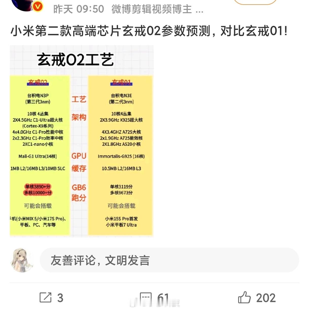 有博主预测玄戒O2的详细参数,大家觉得这靠谱嘛
