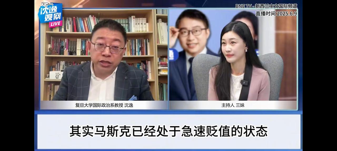 沈逸教授评马斯克前景—— 节目里,主持人问:“马斯克早得罪民主党了,现在又被特朗