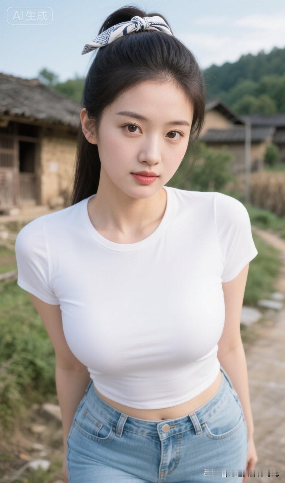 清新夏日穿搭,简约白T恤+牛仔裤,元气少女风