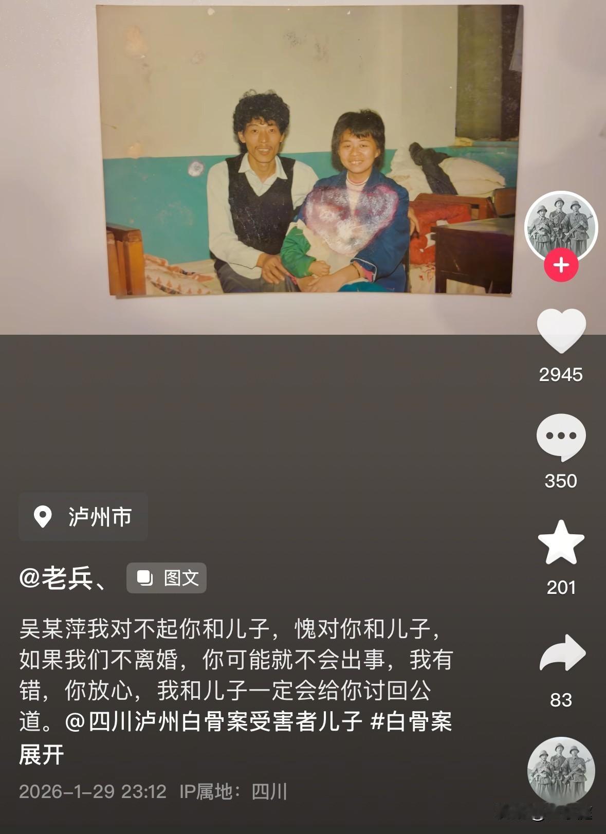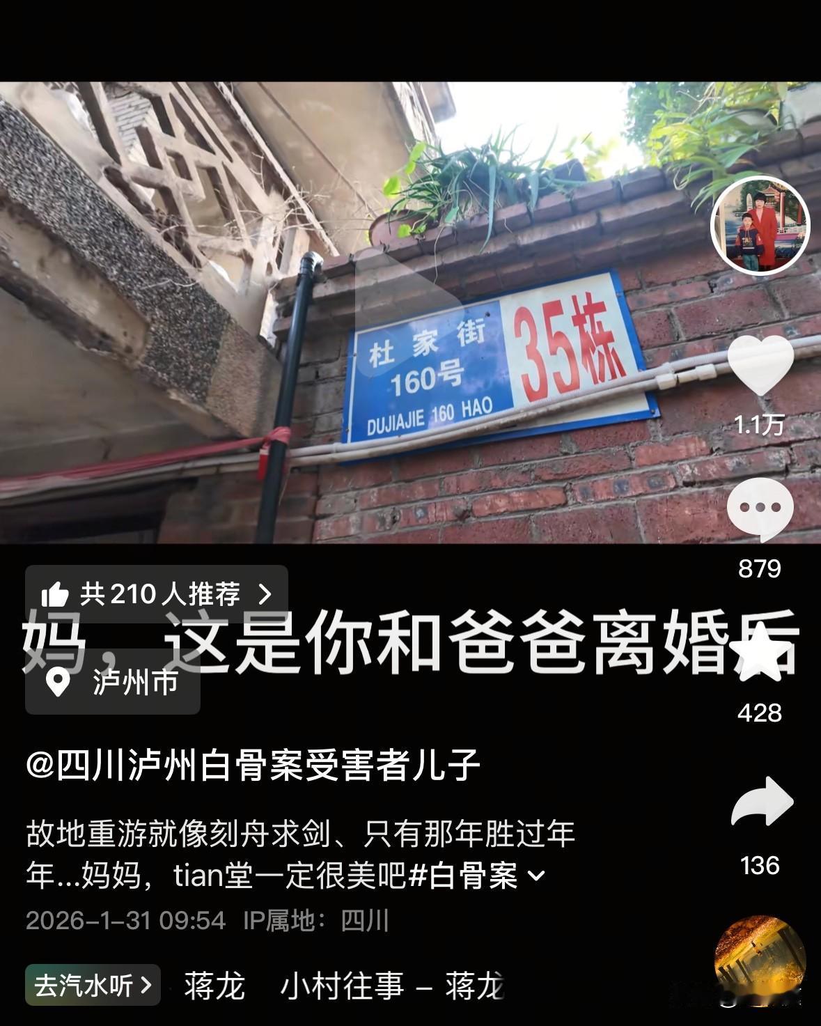 泸州白骨案受害者吴艳萍被杀害以后,她儿子一个月领着每个月30块钱的低保生活,连学费都没有着落,整个的生活状态与之前发生了翻天覆地的变化! 黄平本是一个衣食无忧的孩子啊,父母虽然离婚了,但是母亲给了他全心全意的爱与呵护。然而,所有的一切都在1997年的新年前夕被改变。 自母亲在2月1日消失不见以后,10岁的黄平就彻底丧失了主心骨。纵使他被当地亲戚接管了,但他不愿意寄人篱下,一直心心念念跑出来出来找母亲。他在泸州各个繁华的地段到处寻找母亲的身影,试图找到她,只可惜,一直不见母亲的踪影。 他无数次站在公交商城楼下的位置苦苦等待,却压根没想到母亲竟然就被藏在顶楼之上。 在那个交通和信息都不发达的年代里,他的父亲远在浙江,压根不知道他们娘俩经历了什么。 很长的一段时间里,黄平根本不愿意回到亲戚家,等同于流落街头了。就这样,他从一个不愁吃喝的小孩,成了学费都没着落的孤儿。因为母亲被害,他的生活与之前相差了千里。 黄平母亲的好闺蜜王阿姨非常心疼他,时常给他送点吃的喝的。可那时候她也有自己的小家庭要照顾,更多的方面,实在是有心无力。最终,这位王阿姨只得跑上跑下,替他申请了每个月30块钱的低保…… 两年后,黄平的父亲才接到消息将他带回浙江。自此,他的生活才算好过一些。可失去母亲的这些年,无疑是无论如何都无法弥补的。 这些年里,黄平靠着自己的打拼,也过上了不错的生活。可每当新年,他的心情却无比难受。他都已经是做爸爸的人,但心里始终有个位置空着:没有找到母亲,成了他内心最大的遗憾! 有一年春节,他再也无法控制情绪,嚎啕大哭说自己该有的都有了,可唯独没有了母亲! 坦白说,当时听到这句话就忍不住泪奔了。很难想象,这些年里他究竟是如何走过来的? 如今,杀害他母亲的两个犯罪嫌疑人已经被逮捕,等待他们的必是法律的严惩。可无论怎样,过去的那些遗憾,都将伴随着黄平终生![祈祷][祈祷] 在此,只愿黄平好好的生活下去,带着母亲的希望与爱,精彩的过好下半生!