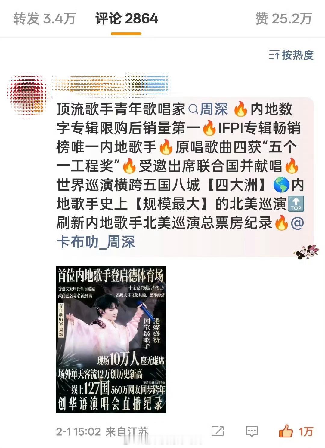 今日微博之夜阵容官宣,前排已被周深家拿下
