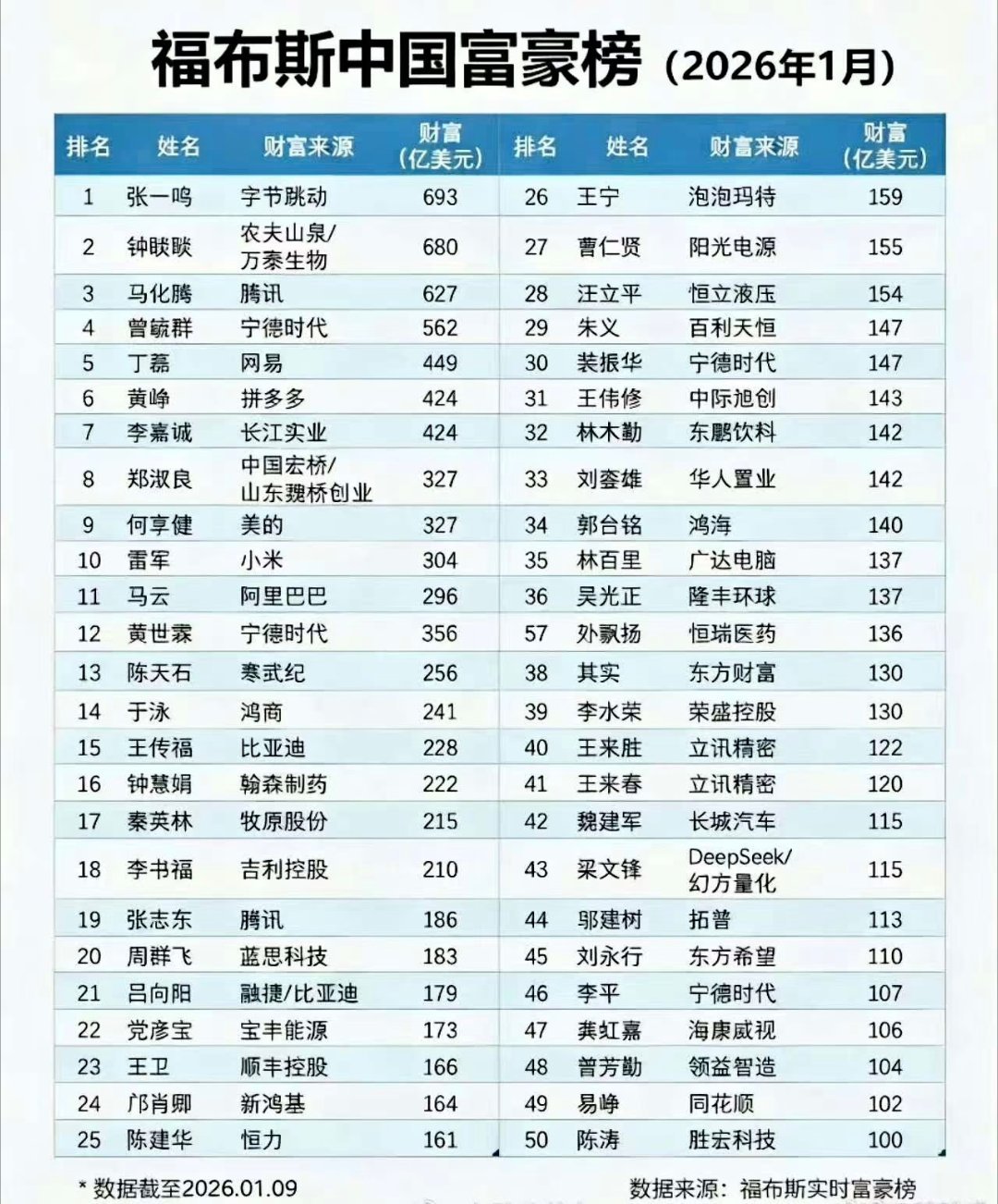 中国最新富豪榜出炉宁德时代一家公司四人上榜,真的是选择比努力更重要啊。