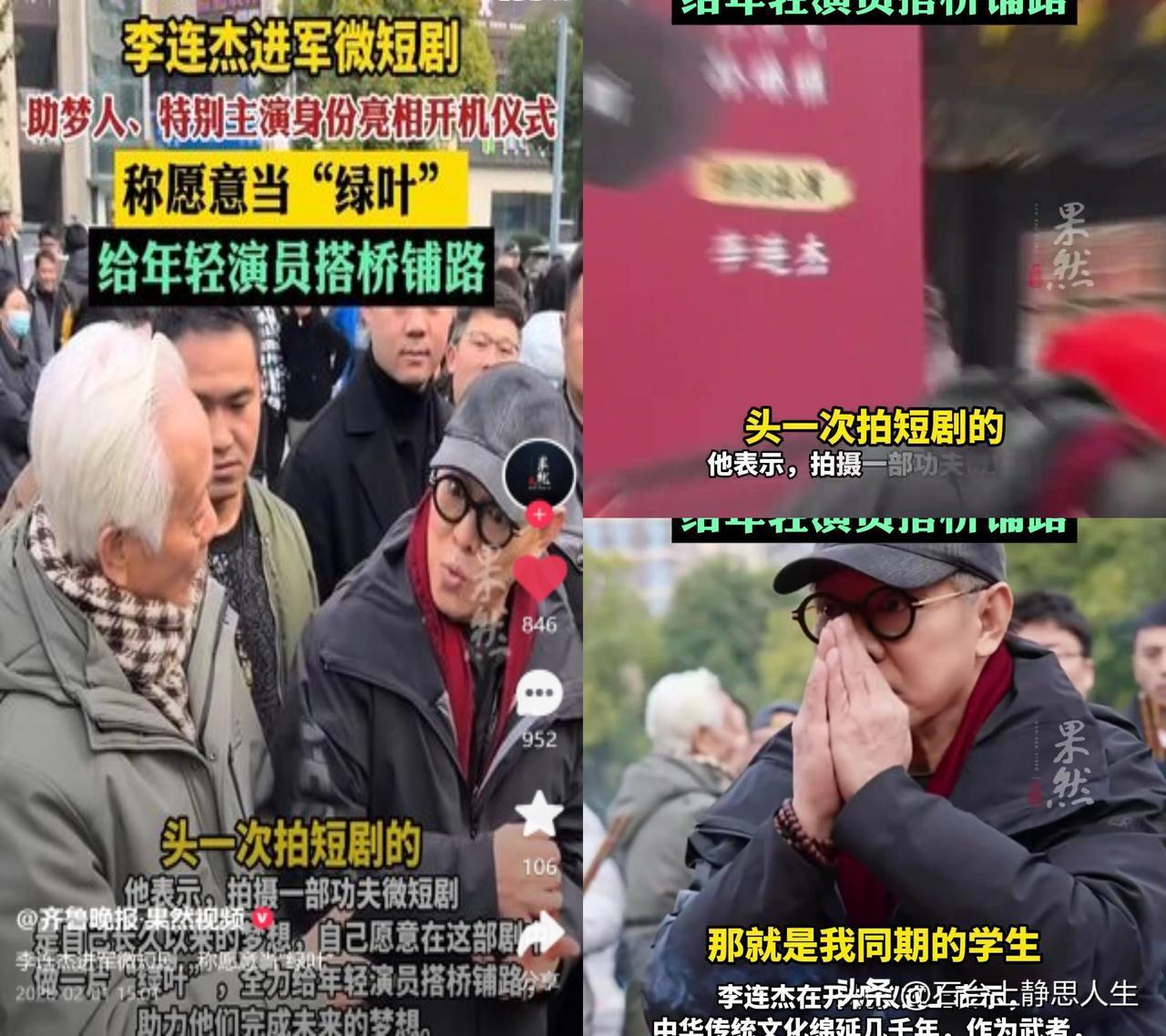 李连杰零片酬当短剧绿叶 功成名就的武术前辈,放着传说中的身价不赚,转头扎进微短剧圈甘心做新人的“绿叶”,还分文不取。他说最大的梦想,是让年轻朋友理解武术精神,要给后辈搭桥铺路,甚至自称“短剧新人”,放下身段亲自指导动作戏。 这事儿放在今天的影视圈,太难得。现在不少项目先算流量账、票房账,功夫戏靠替身抠图凑数,“传承”成了喊得响亮的口号。而他早已站在行业顶端,却还盯着“武术精神的延续”,不沾半分商业利益,这种纯粹的初心,比任何流量数据都有分量。 真正的热爱,从来不是躺在功劳簿上吃老本,而是把手里的火炬稳稳递出去。希望这份“真功夫”,能给浮躁的圈子多浇点实诚的水。