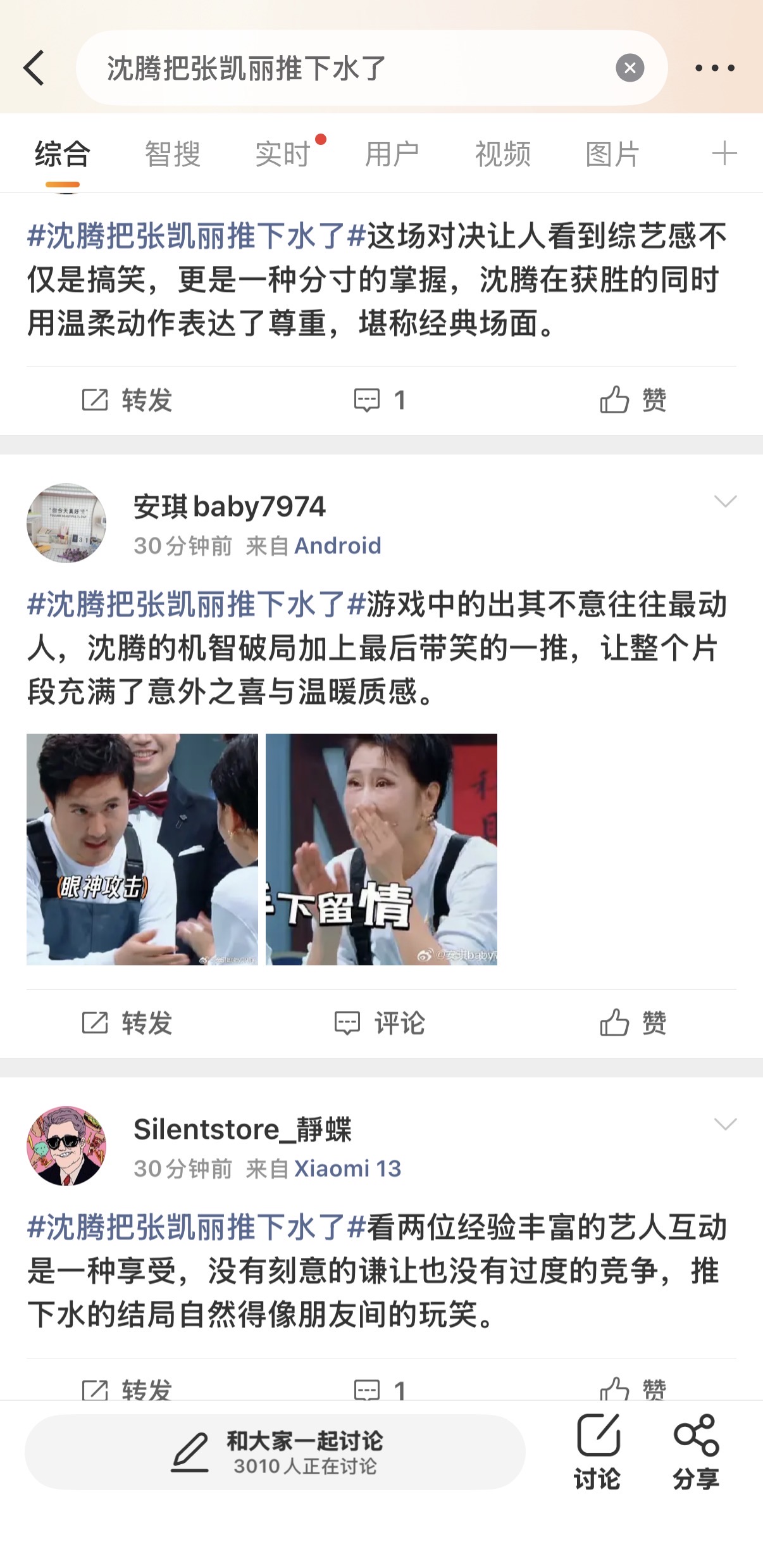 沈腾都带不动《王牌对王牌》,停掉得了。我看到“沈腾推张凯丽下水”,要么就是他不讲武德,要么就是飘了不尊重女性前辈,结果点开一看评论都是一样的,是节目组安排的热搜。这个节目一期请一个连的嘉宾,游戏老套,干脆别播了。