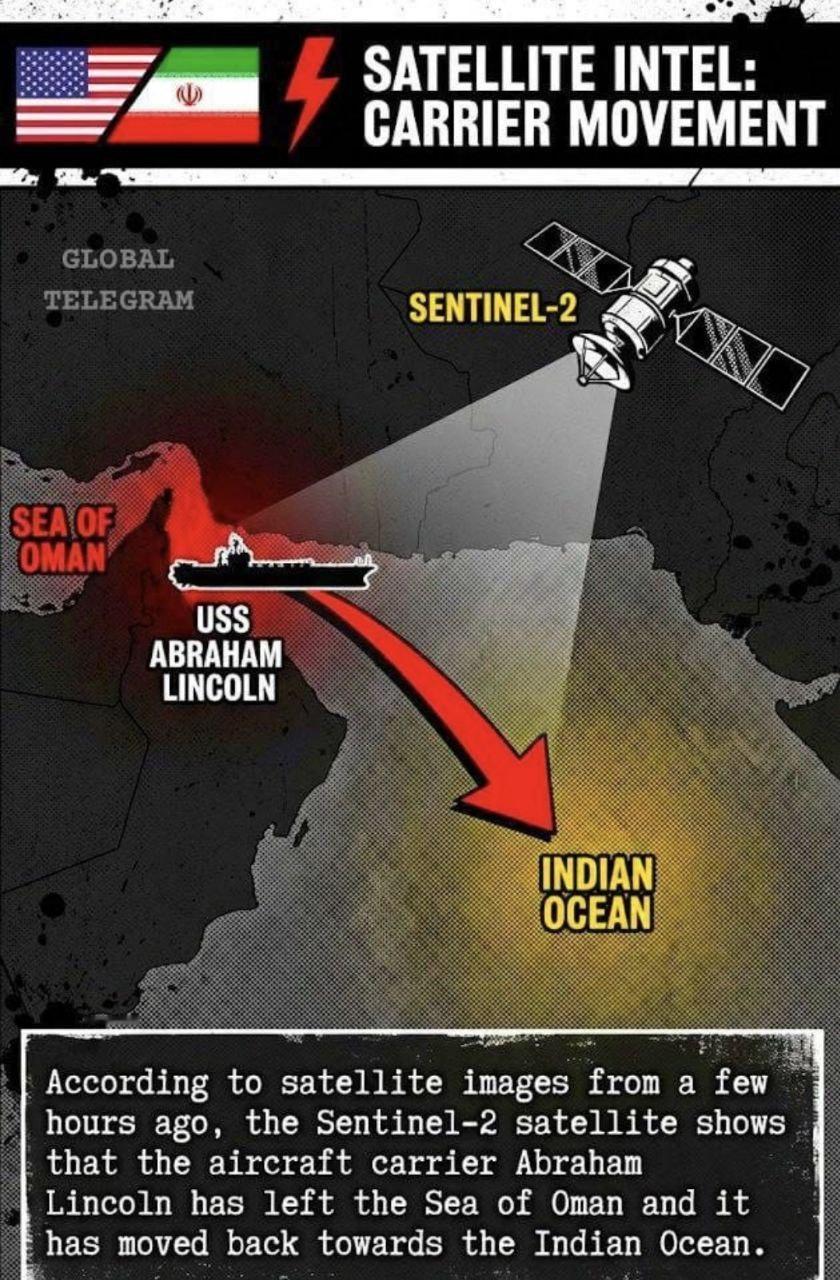 2026年2月1日,根据世界航线航行系统的数据,美国海军林肯号航母打击群抵达北阿拉伯海之后,伊朗继续出动侦察无人机,持续高强度侦察美国海军林肯号航母的位置,伊朗无人机对阿曼湾,波斯湾空域,阿拉伯海北部,进行侦察活动。而根据欧洲卫星图像,Sentinel-2卫星数据显示,美国海军航母林肯号已离开阿曼海,正返航印度洋。 同时,美国方面也监控伊朗海军,伊朗革命卫队海军:萨维兹基地舰在阿曼湾外,阿拉伯海,伊朗革命卫队海军4万吨无人机航母在阿巴斯港口外,伊朗海军第103和第104远洋特遣舰队,都已返回阿巴斯港。目前威胁伊朗的八艘美国海军驱逐舰,包括弗兰克·E·彼得森少将号,在北阿拉伯海(护航美国亚伯拉罕·林肯号航母);斯普鲁恩斯号 ,北阿拉伯海(护航美国亚伯拉罕·林肯号航母);迈克尔·墨菲号,北阿拉伯海(护航美国亚伯拉罕·林肯号航母);美国军舰德尔伯特·D·布莱克,红海;美国军舰麦克福尔号,霍尔木兹海峡附近;美国军舰米切尔号,霍尔木兹海峡附近;美国军舰布克利,东地中海。 美国海军林肯号航母跑到了阿拉伯海,后撤200公里,美国这是想以退为进,做长期打算了,攥紧能源这把利器,西边交给太平洋,东边交给欧洲。这样美国幕后蓄势待机,剩下几个强国就不能和平相处了。相比美国,以色列战略目标更清晰,只要摧毁伊朗导弹,不管伊朗谁上台,执政者亲以反以都无所谓,伊朗反正打不到以色列了,伊朗有本事陆军途径伊拉克,叙利亚,过去打以色列。