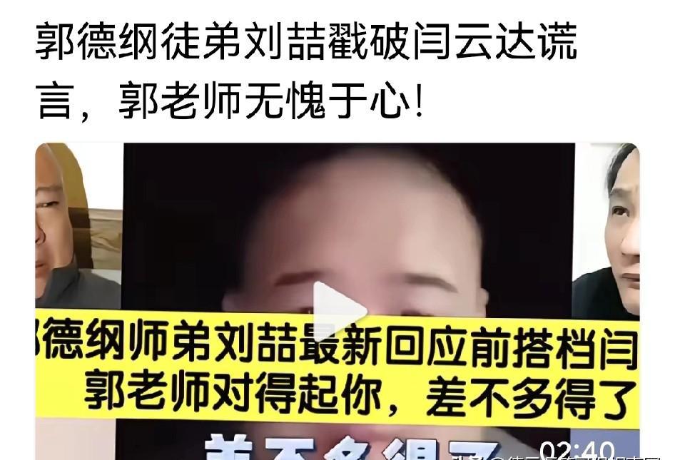 把“队长”和《扒马褂》这种级别的资源,硬塞到你手里,你都接不住。 搭档刘喆直播时直接点名,说闫云达就是个“蹭流量的伪君子”。 郭德纲让你当二队队长,结果队带得稀烂,内部投票,人心向背。 带你上海外专场,演砸了。 给你使《扒马褂》,你也刨了。 机会喂到你嘴边,你能力跟不上啊。 最让人不齿的,是走了还要回头“吃唐僧肉”。 一边发声明退出,一边死死攥着“云”字不放,靠这个名号接活、赚钱,这是懦夫的行为。 刘喆喊话让他摘掉“云”字,用回本名闫宗海,是让他自己给自己一个交代。 师父给你的,是那个“云”字;但江湖要看的,是你这个人。
