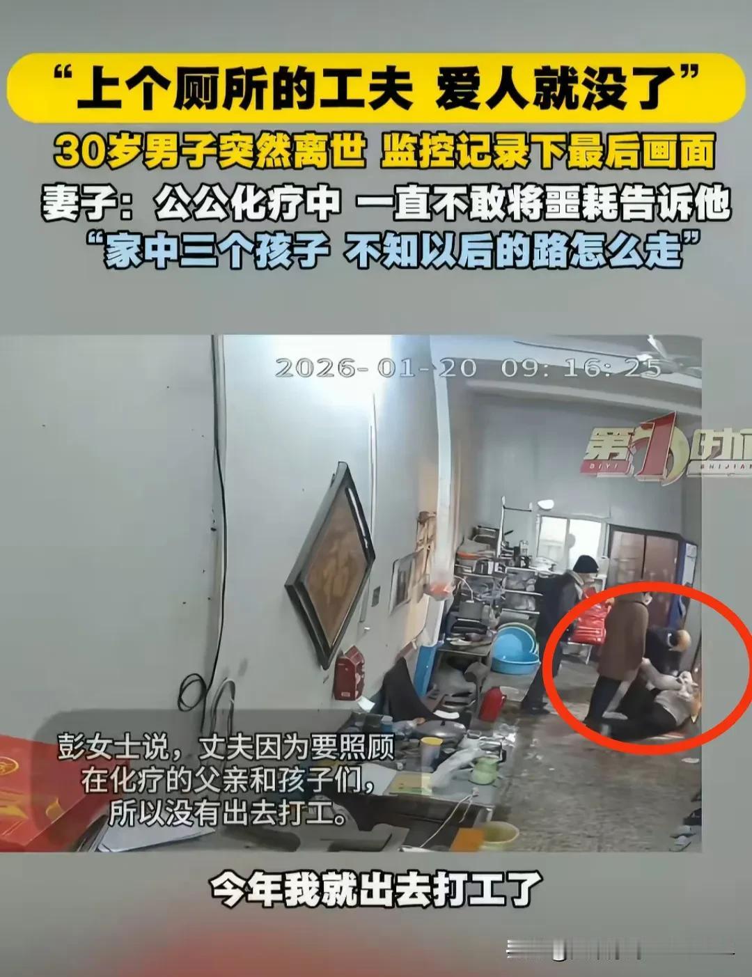 谁能想到,河南南阳一名才30岁的男子,上个厕所,人就没了! 关键是他留下了3个孩子,小的5岁,大的12!他过去是全家唯一的经济支柱,妻子崩溃痛哭,还不敢把消息告诉化疗中的公公! 据悉,男子生前半个月反复胸痛,去医院简单检查后,也只是吊水缓解! 有网友说,算算男子18岁就有孩子了,这分明是活活累死了,也不知道这样的家庭生这么多干什么?非要这么多儿子吗? 还有网友说,现在每年约55万人死于心源性猝死,世事无常...人不是老了才会死,是随时都会死,珍惜当下吧。