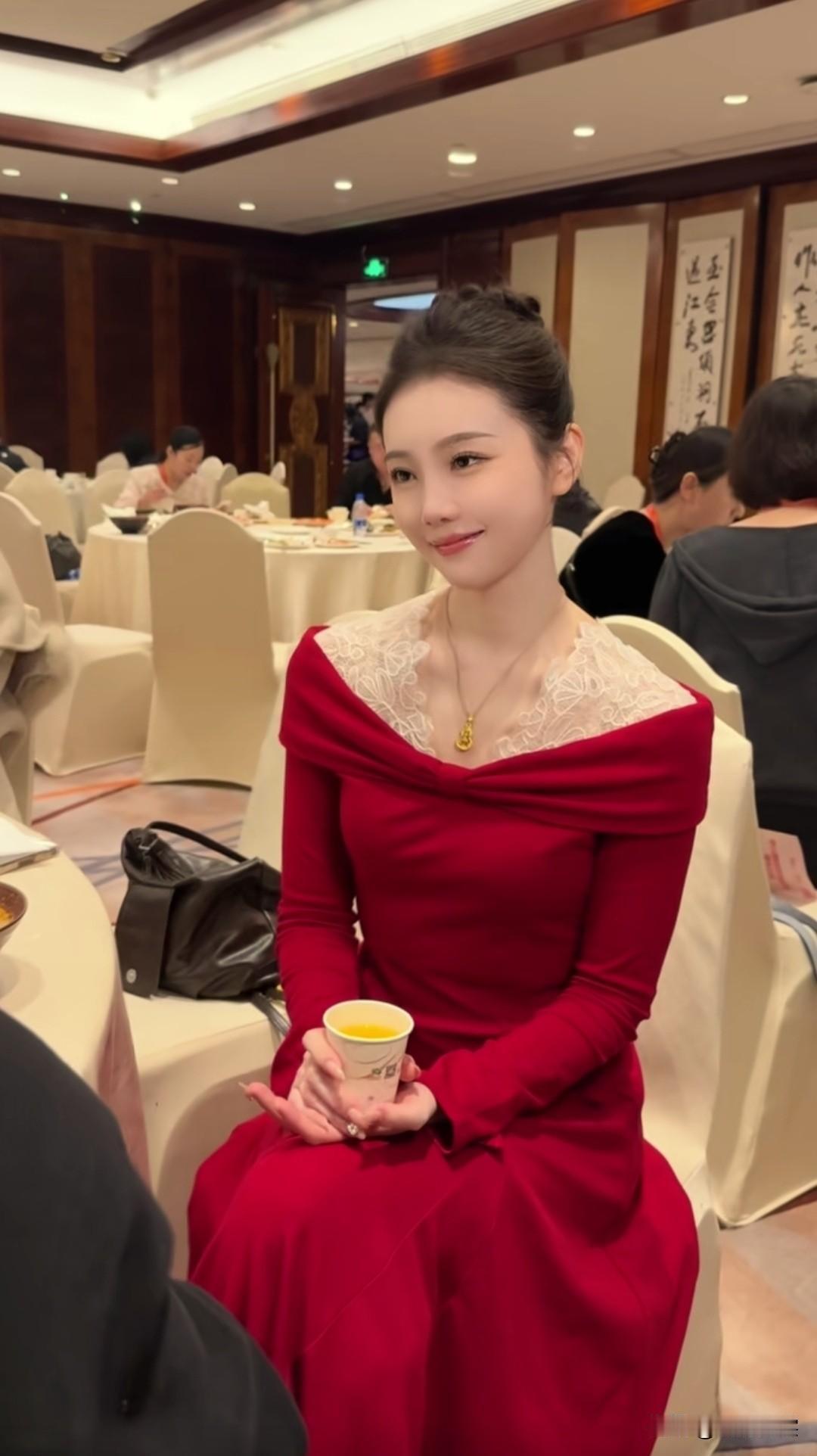 优雅红裙,复古黑丝,都市女性风范。