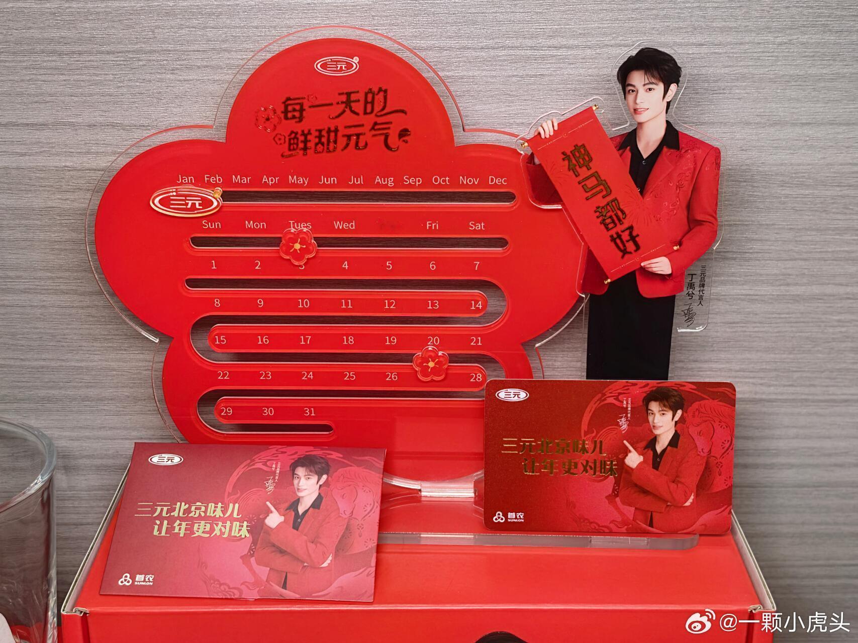 丁禹兮三元2.0周边真喜庆,红红火火过大年了!酸奶纯奶组合,红色系设计超有年味儿,日历、杯子、贴纸一应俱全~杯子也很好看,每次喝牛奶都有代言人的陪伴,幸福感爆棚!三元品牌代言人丁禹兮三元北京酸奶