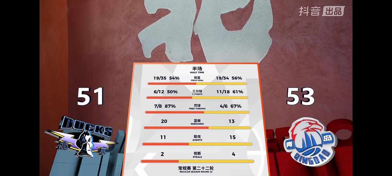 青岛崂山啤酒客场下起三分雨,上半场就投中11记三分,段昂君更是6投6中,半场砍下18分,带领青岛崂山啤酒上半场53:51领先北京北汽。CBA常规赛第二十二轮北京北汽主场对阵青岛崂山啤酒,双方近况都不佳,青岛崂山啤酒五连败,欲客场擒北京北汽终结自己的连败。第一节青岛崂山啤酒打出罕见命中率,以36:18大比分领先北京北汽,可惜第二节命中率下降,被北京北汽逐渐缩小分差,但仍以53:51的微弱优势领先。双方下半场决战时刻,看谁更硬!