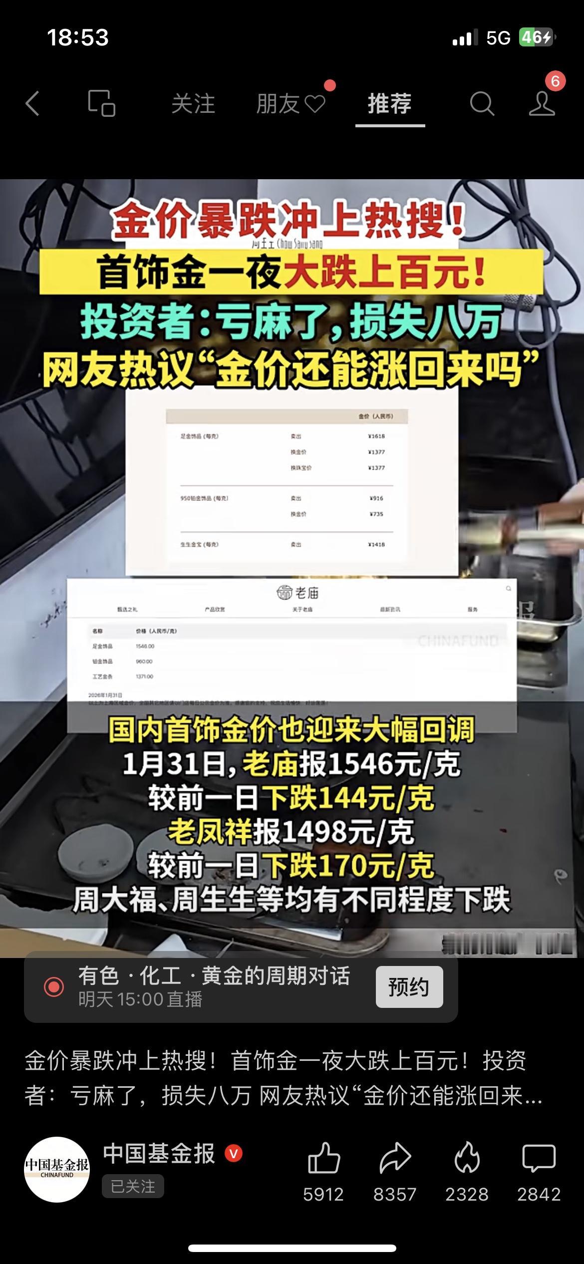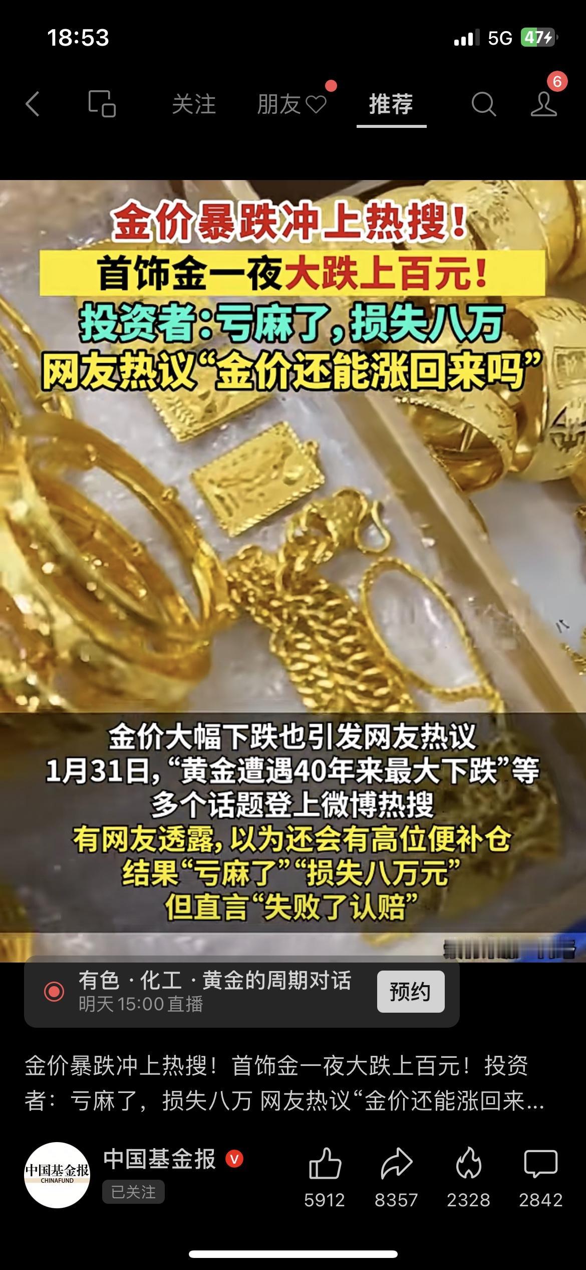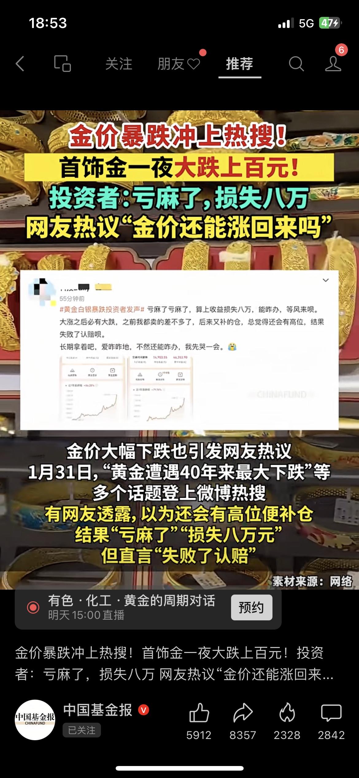 我闺蜜昨天刚买的金镯子,今天直接亏了1200块,气得她想把柜姐拉黑!伦敦金现单日暴跌10.18%,创40年最大跌幅,身边补仓的张叔亏了8万,直呼“黄金避险都是骗人的”。中信证券都在喊警惕,别盲目抄底! 你手里的黄金,现在是割肉还是扛着? 黄金理财 财经热点