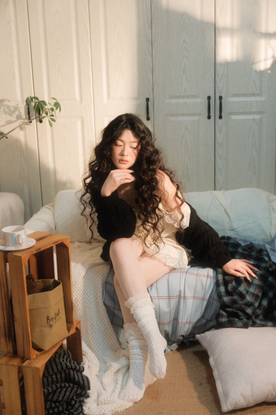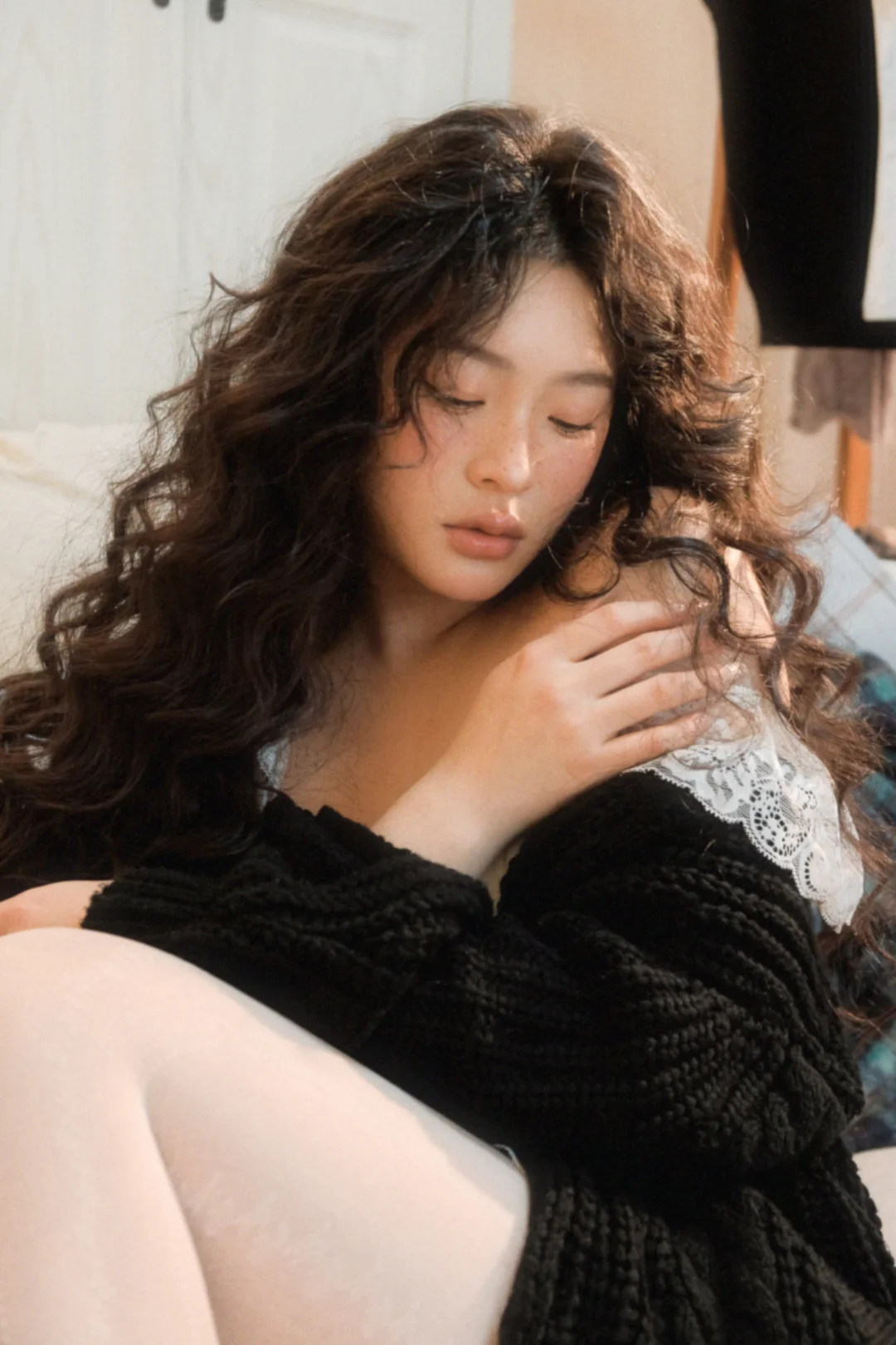 居家写真 室内写真 宅家拍出氛围 日系居家少女写真 氛围感卷发 氛围感写真 韩杂写真 居家拍照 少女感写真 画报写真