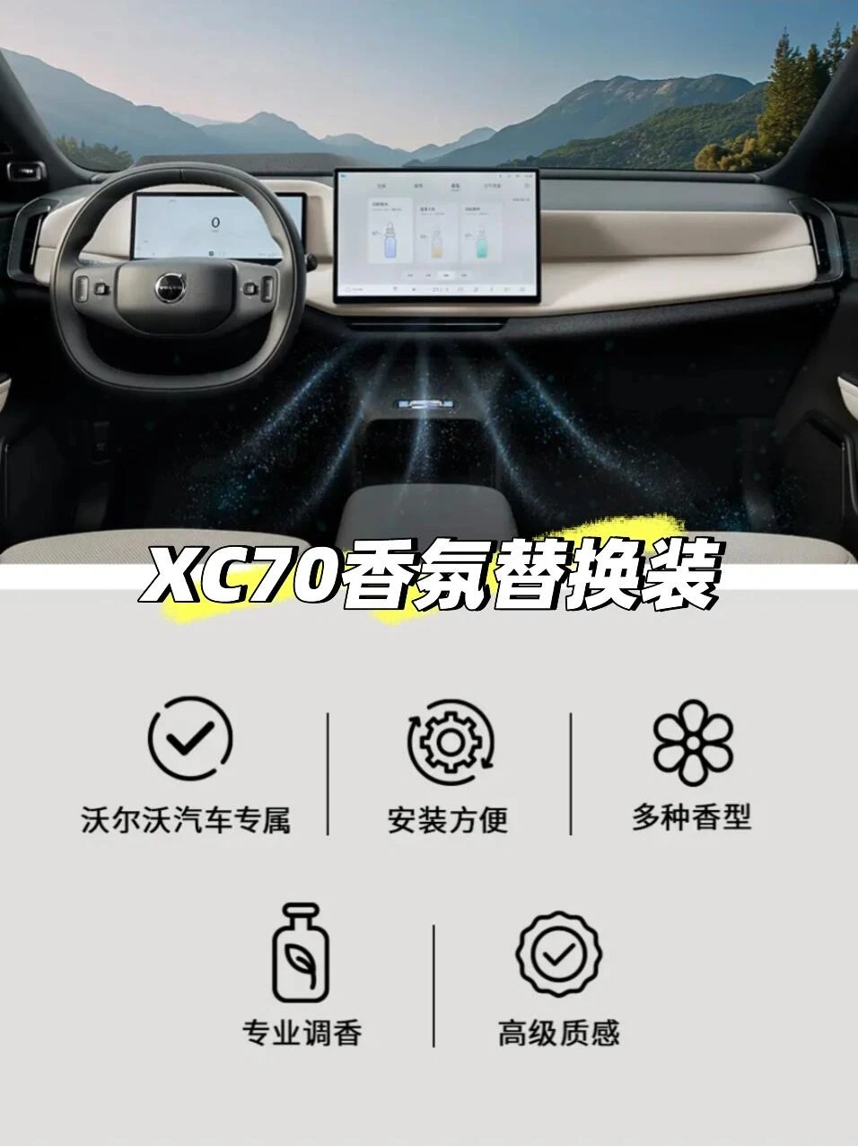 沃尔沃XC70车载香氛替换装现已上架!让北欧香氛不间断!由全球顶级香精香料优秀企业奇华顿定制的四款香型,每一款都戳中审美,通勤回家路直接变身疗愈时光✨
