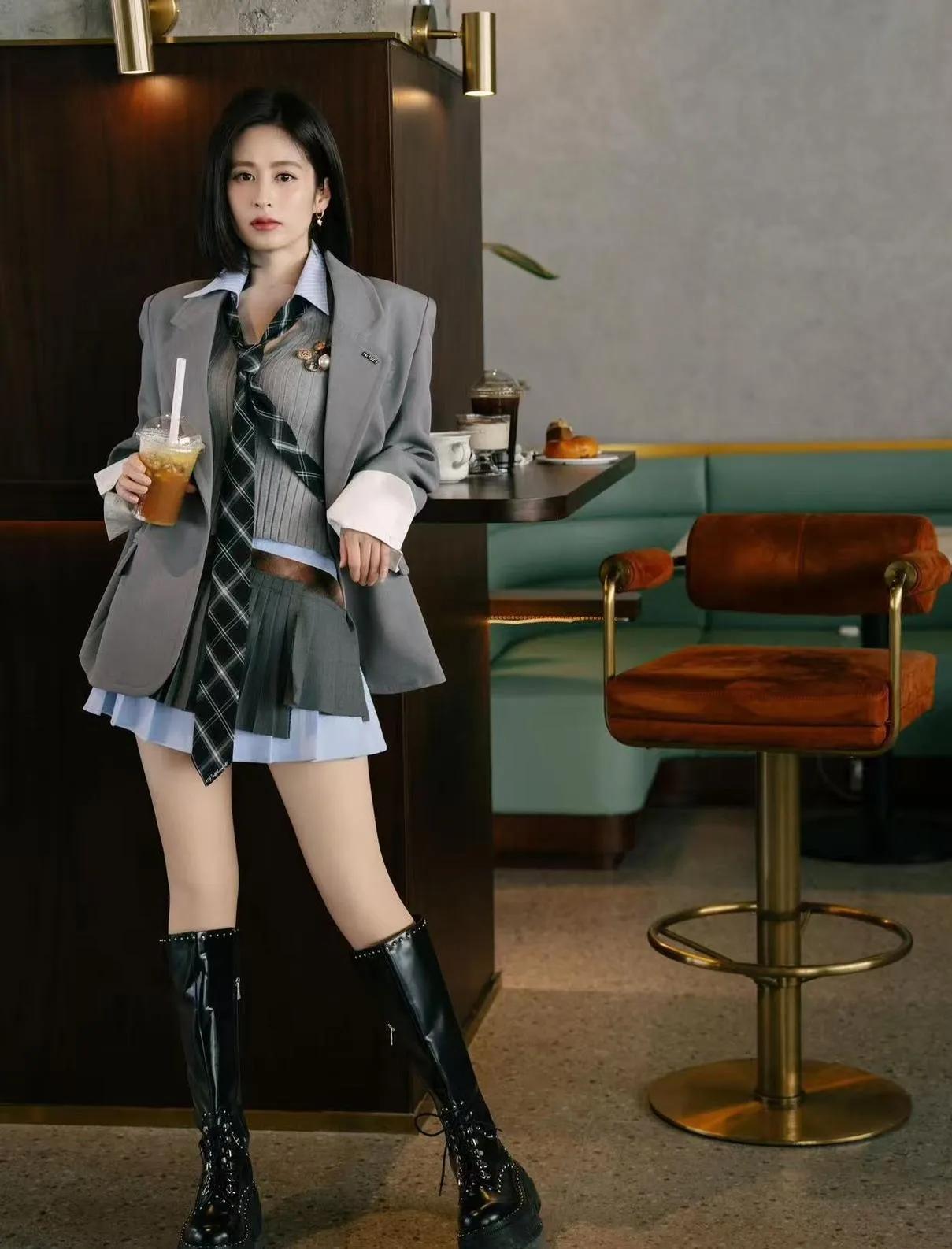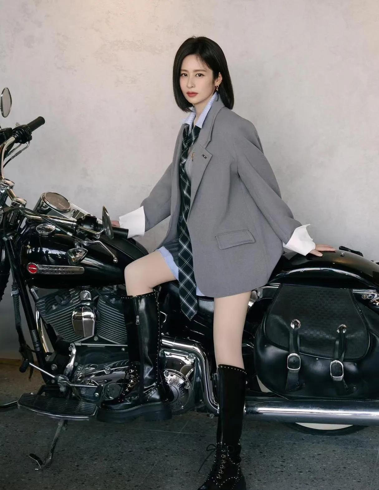 👀 救命!颖儿这是偷偷重返18岁了吧! 骑上机车的那一刻,我直接喊出“学姐好!”🖤 灰色西装+百褶裙+长靴,学院风辣妹风一键切换,谁能信这是当妈的人! 姐姐这状态,说刚毕业我都信! 颖儿 辣妈天花板 学院风