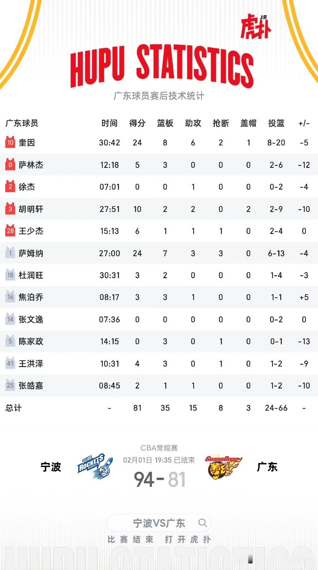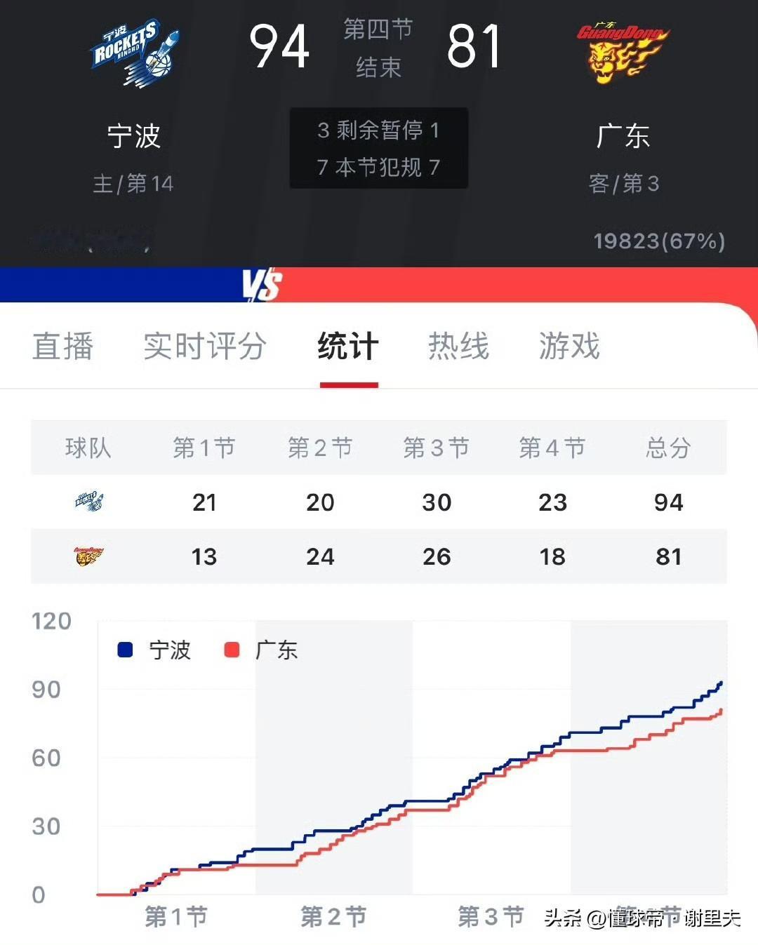 有一说一!广东宏远豪华战舰实力被高估了,竟然输给宁波13分,和辽宁队处境不同,人家辽宁队可是新老交替+外援不给力,而广东队是升级版体的冲冠热门球队,宁波队史首次战胜广东队,宁波太强,广东队的问题很大啊!国内球员根本顶不上来,第四节都是输多胜少,对外援的发挥依赖性很强,打高端局从来没证明自己,如果在五号位不换强援,四强基本没希望。