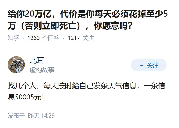 给你20万亿,代价是你每天必须花掉至少5万(否则立即死亡),你愿意吗?