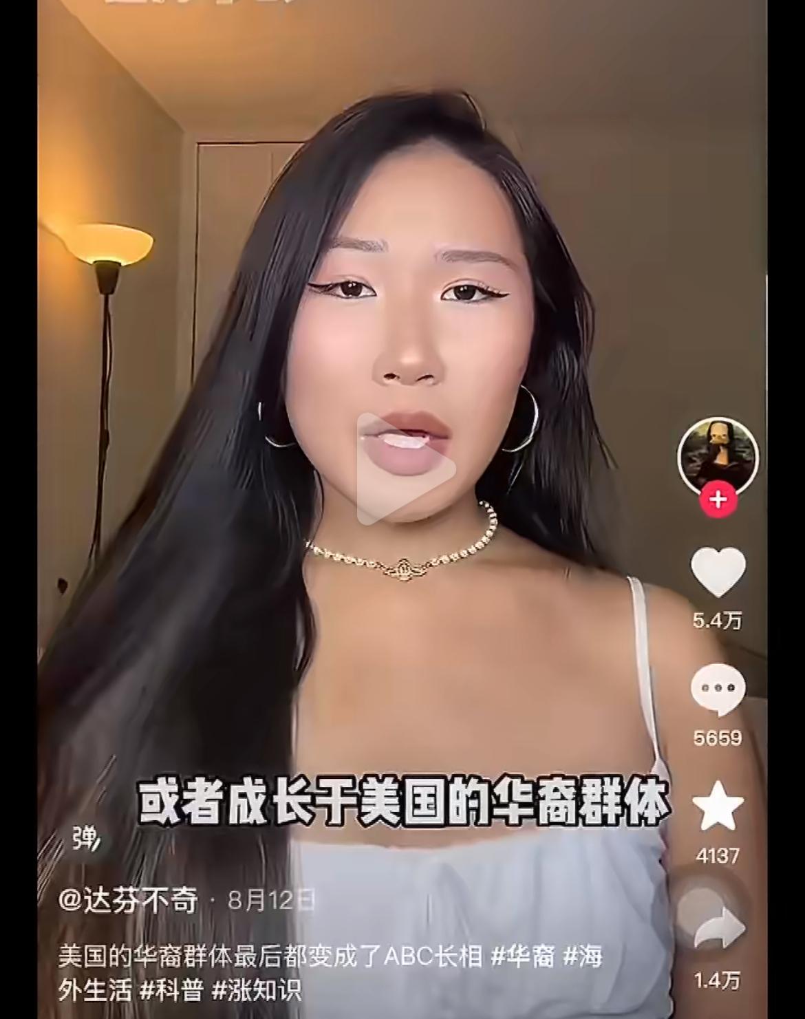 华裔请求大家不要说她是ABC了,她已经整了眼睛了,他爸爸的同事给她爸爸发了她的视频说“可以看出ABC与中国人长得不一样”她认为这是在丑化她的视频,她不想承认自己是 ABC长相,说自己是中国人,而且也不想再做手术整颧骨了