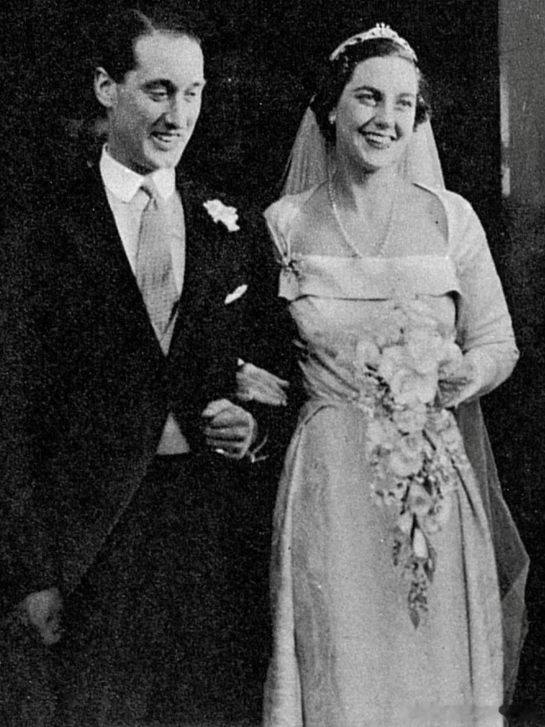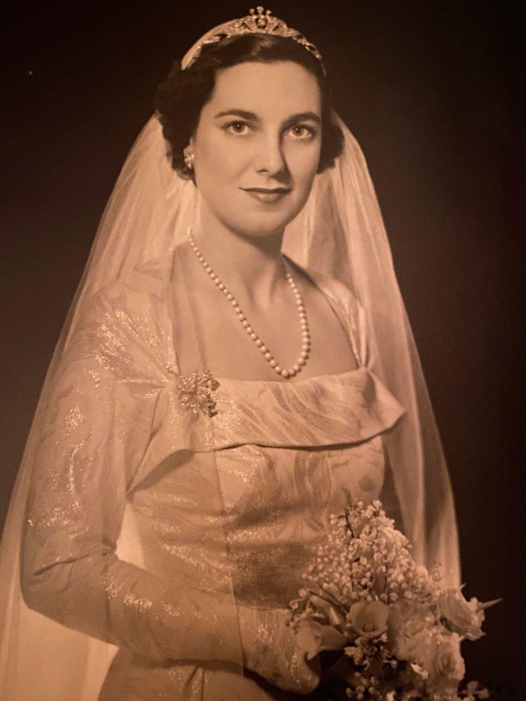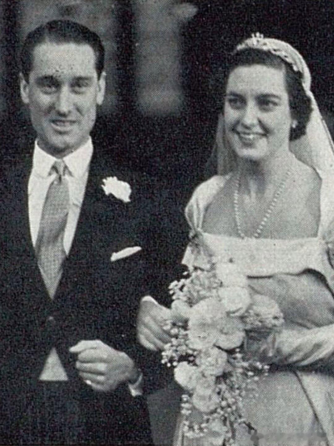 1950年,苏珊身穿Dior设计的婚纱并借戴这顶王冠嫁给了第1任丈夫弗朗西斯,由于是借戴,ins博主Zuleika·Gerrish尚未找到出借方的来历。PS:博主的外祖母苏珊是真是端庄有气质,婚纱精致,王冠也佩戴得非常出彩。