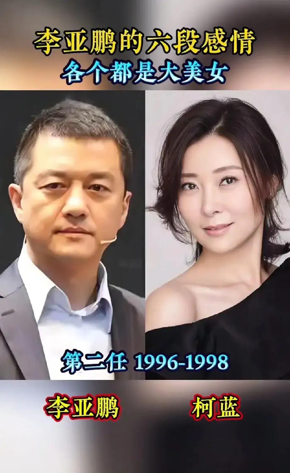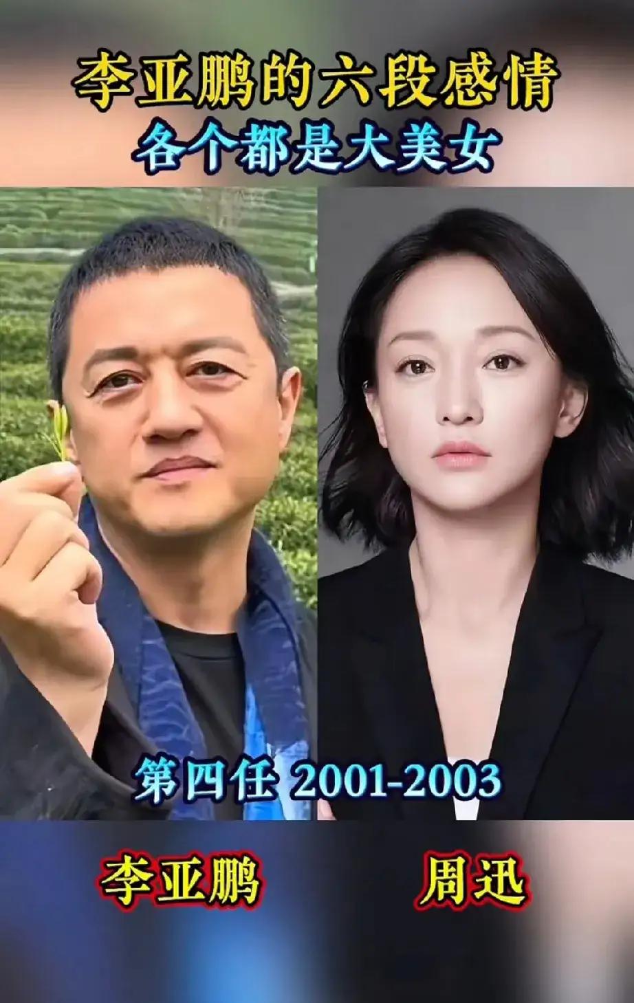 曾爱上过周迅的李亚鹏。 曾爱上过王菲的李亚鹏。 曾爱上过海哈金喜的李亚鹏。 曾爱上过瞿颖的李亚鹏。 曾爱上过柯蓝的李亚鹏。 曾爱上过刘岩的李亚鹏。 李亚鹏与王菲的婚姻是娱乐圈备受关注的一段往事,两人在事业巅峰期结合,曾是众人眼中的“金童玉女”,婚姻中既有对爱情的坚守,也因性格、人生追求的差异而历经波折,最终和平分开。