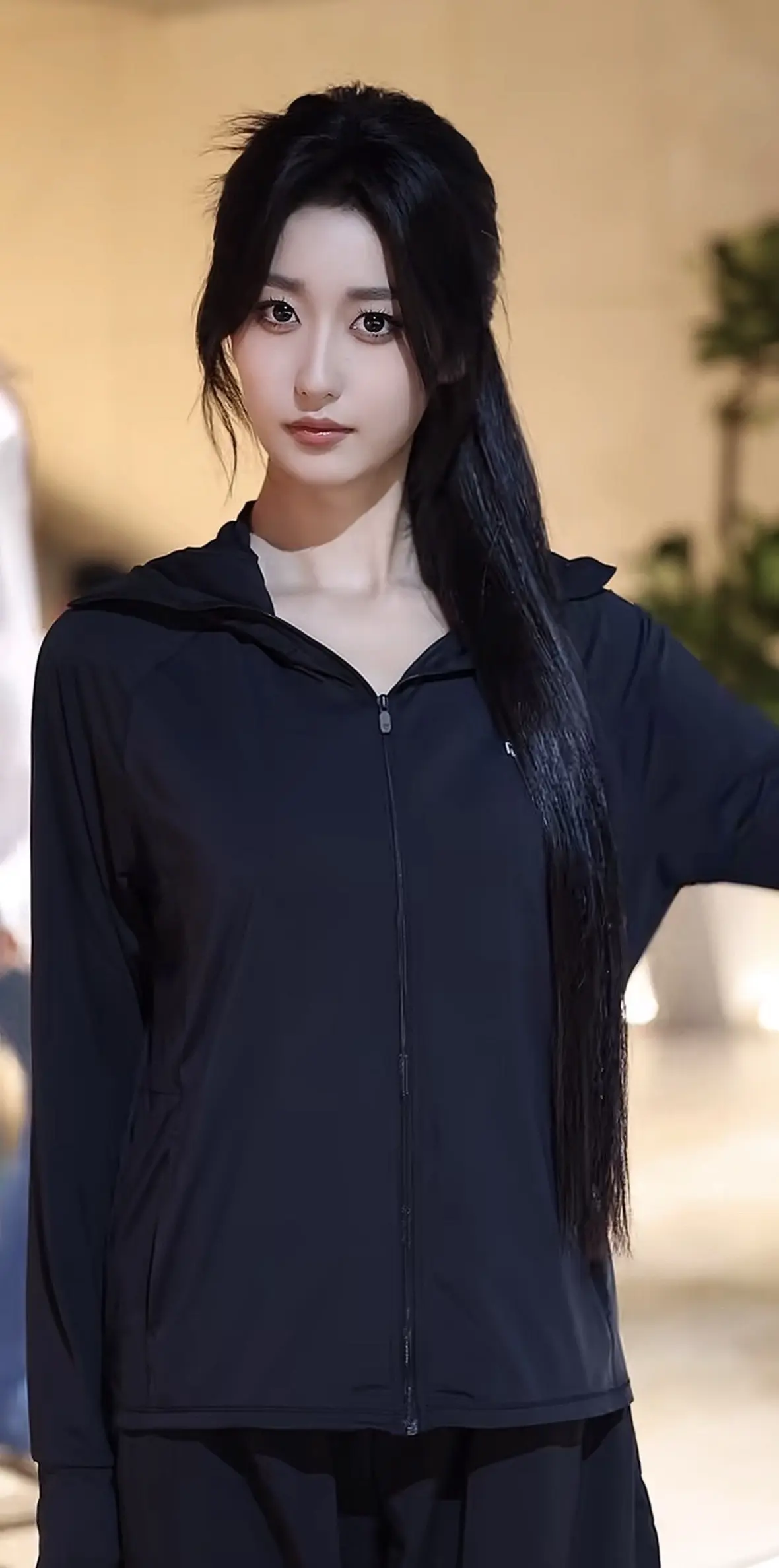 张天爱跟素人合影,胯真的好宽,大宅院似的