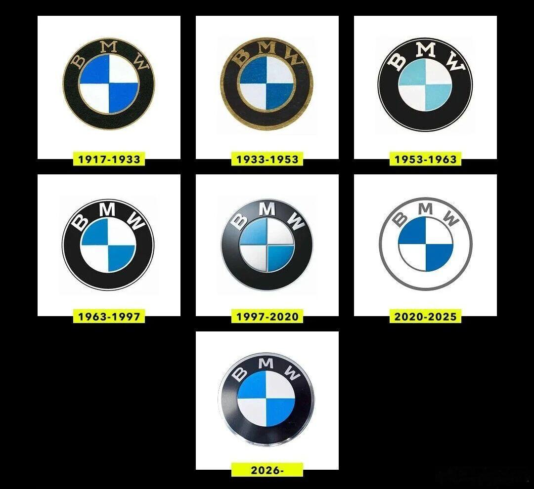 根据宝马 设计总监奥利弗·海默尔的解释,新标识在保留经典镀铬与蓝白扇形的基础上,通过精细化字体、调整白色区域位置并采用哑光外圈,注入了更多类似高端腕表的精密感。此次换标统一了燃油与电动车型的标识,标志着电动化 已成为品牌核心。在宝马标识的百年演变中,1917年的初版奠定了蓝白基调,1997年版的立体镀铬设计极具工业时代特色。相比之下,我最欣赏2026年的最新版本。它在数字化时代成功实现了“去繁就简”,既延续了百年传承的基因,又以精致的扁平化设计清晰地指向了品牌的电动化与数字化未来。宝马新车标