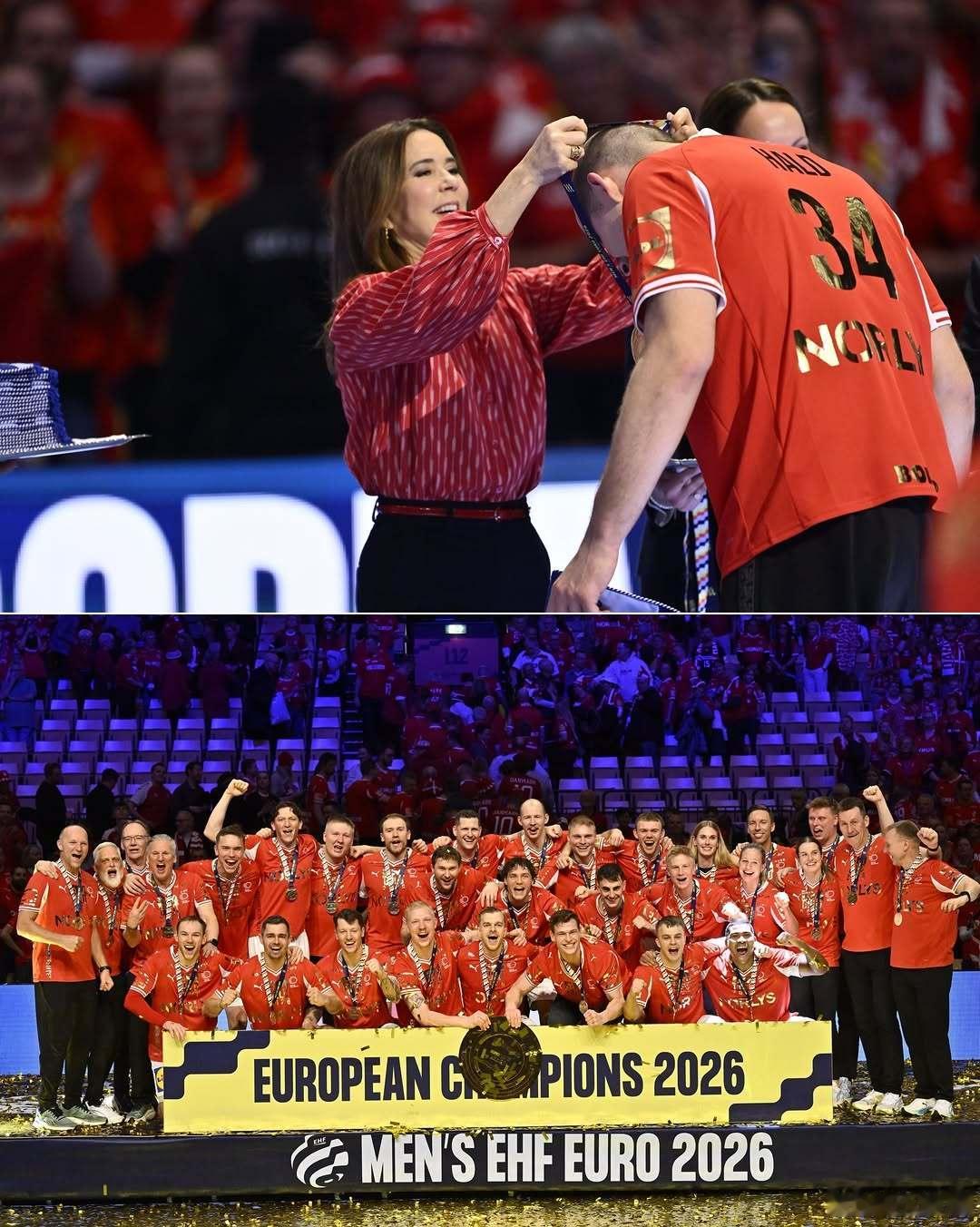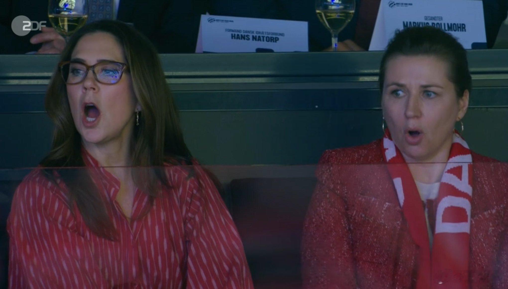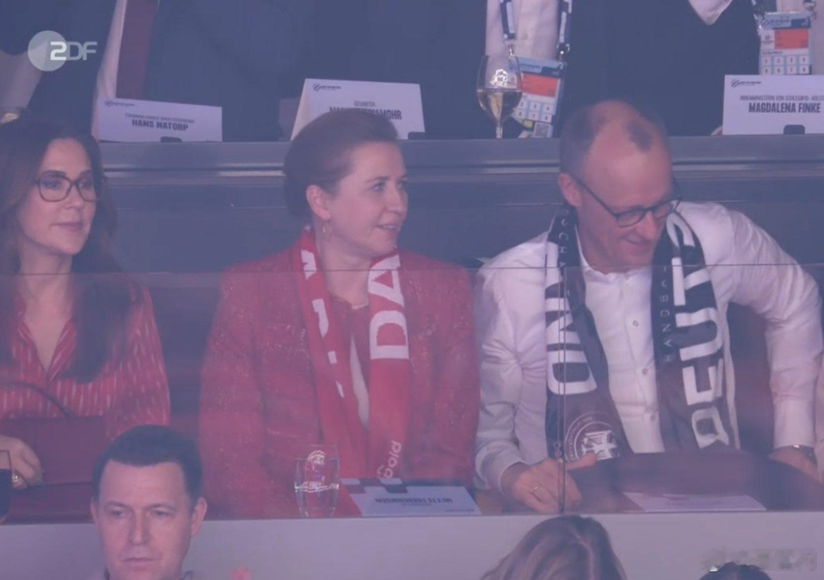 丹麦王室 🇩🇰2月1日,玛丽王后和首相梅特在海尔宁观看丹麦队和德国队的手球决赛。世界各国王室同场还有德国总理弗里德里希·默茨。