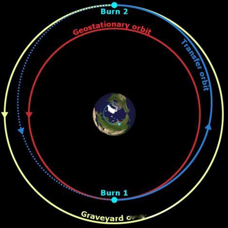 移位:按照惯例,它被推入了位于GEO上方数百英里的“墓地轨道”(Graveyard Orbit),旨在减少对在役卫星的干扰。
