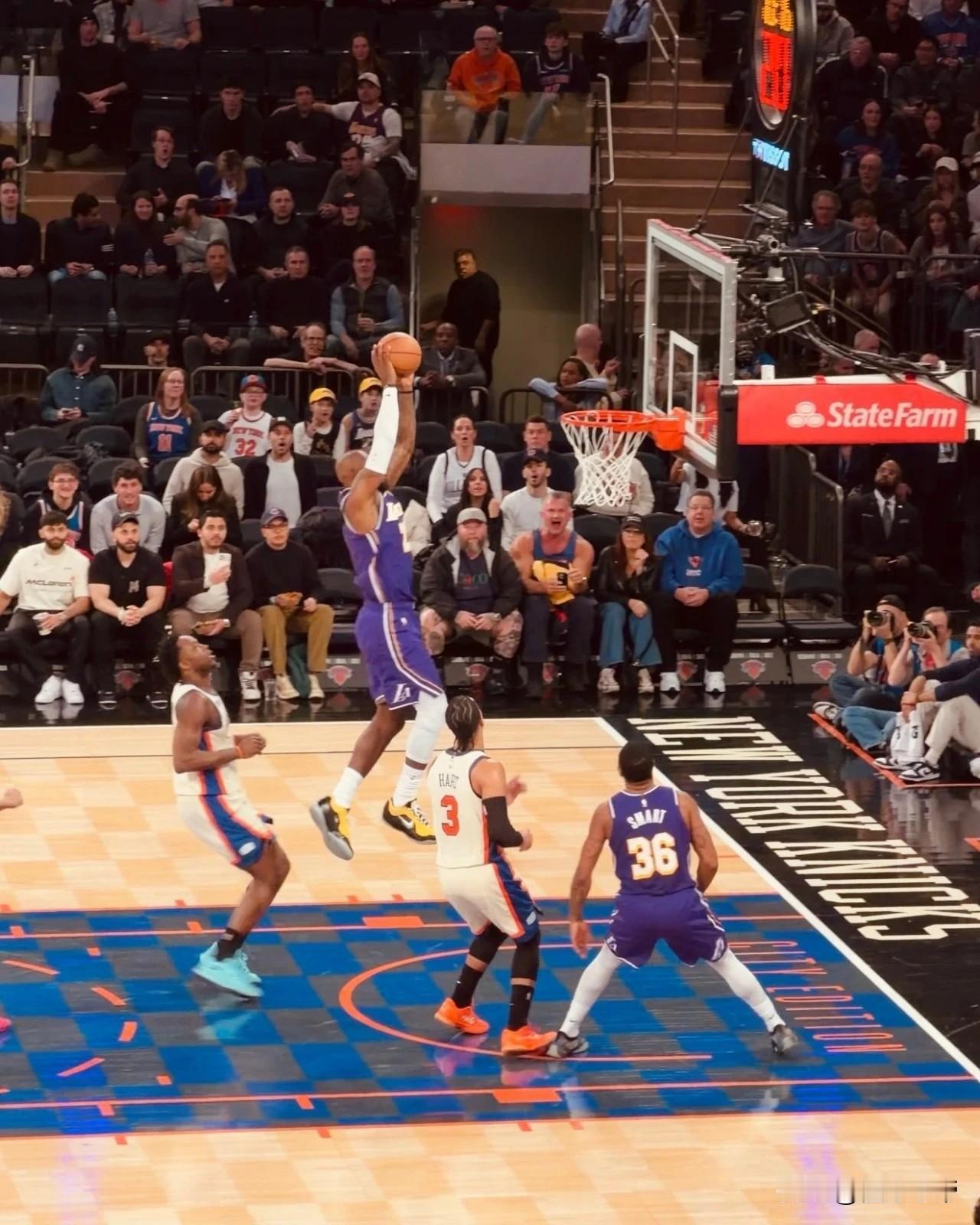 这就是全明星的实力,詹姆斯爆砍22分再度上演飞身爆扣! 在今天湖人与尼克斯的比赛中,41岁的詹姆斯不服老,全场出战34分33秒,投篮15投9中,三分6中2、罚球6中2,爆砍22分5篮板6助攻1抢断的数据,遗憾的是湖人100-112输给了尼克斯。 今天詹姆斯入选了全明星替补阵容,这是詹姆斯职业生涯连续第22次入选全明星,也是首次入选全明星替补,詹姆斯今天用一记飞身暴扣证明了自己还不老,入选全明靠的是实力而不是资历。