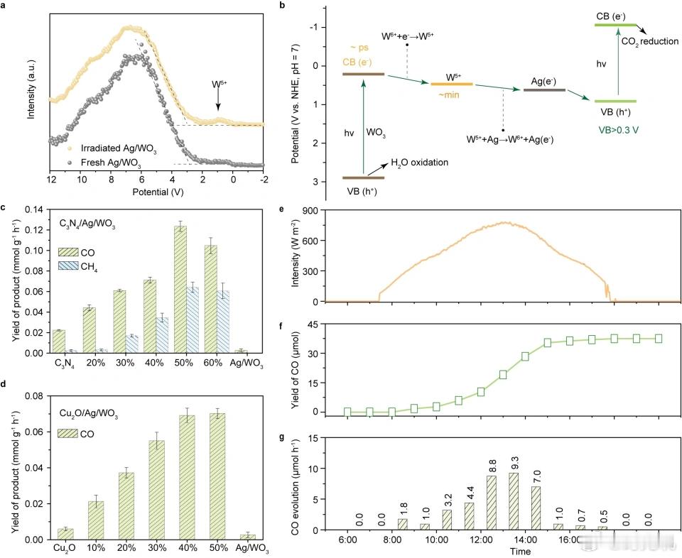 我国实现人工光合关键突破 我国科研团队复刻植物电子暂存机制,创新设计电子存储路径,研发出 Ag/WO3 复合催化剂,让二氧化碳转化效率提升近百倍!该方案破解电子空穴寿命短的核心难题,自然光下稳定运行,为太阳能规模化转化温室气体、制备清洁能源提供新路径,硬核科技助力双碳目标,太赞了!