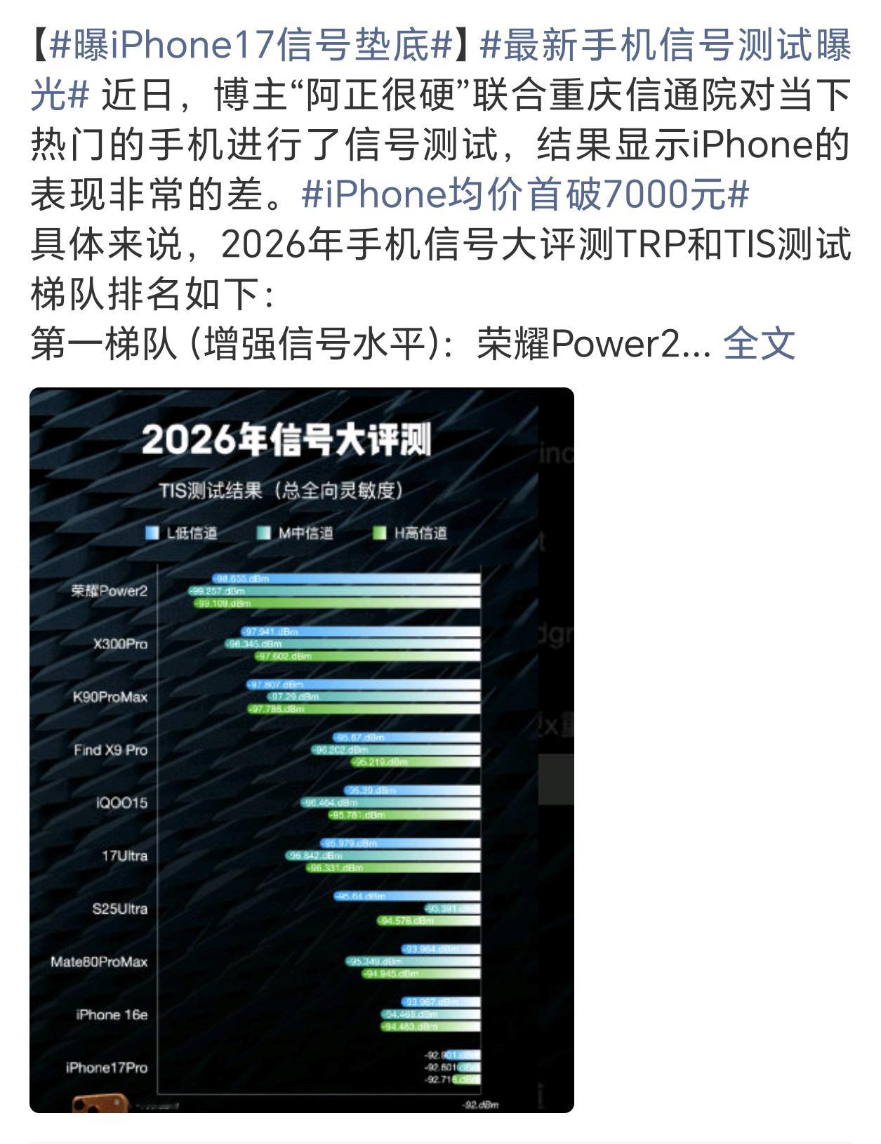 曝iPhone17信号垫底苹果手机的信号问题这么多年了一直存在,可能大家也都习惯了吧,依旧挡不住它上千万台的销量,就无所谓了