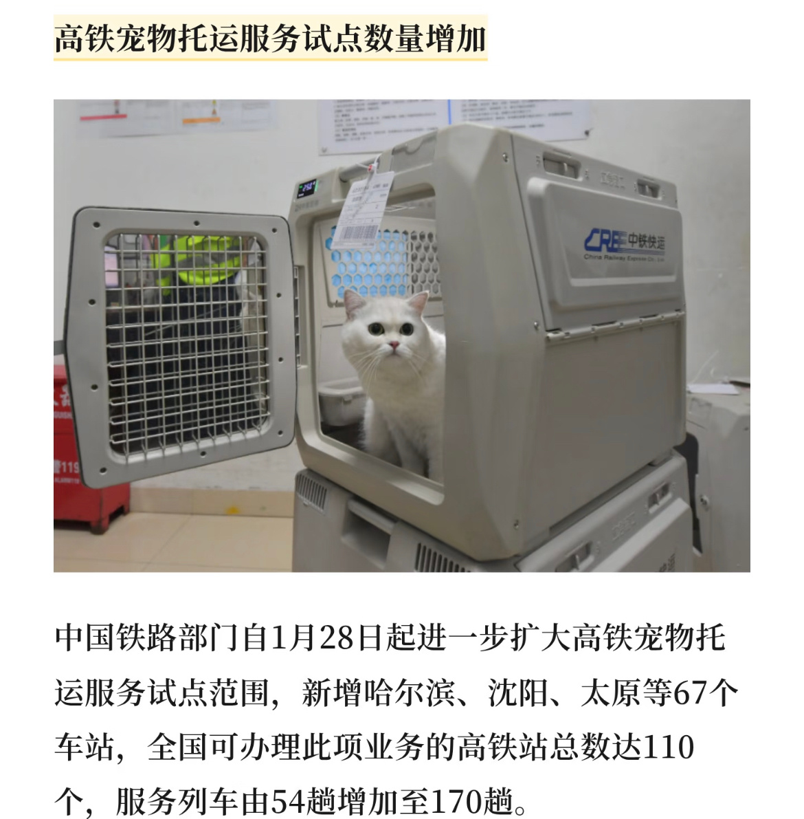 2026春运开启新增高铁宠物托运试点,越来越多的人可以带毛孩子回家啦~‼️通过12306购买的乘车日期为2月2日及以后的票,在支付成功30分钟且在开车前4h以上的,退票不收费。