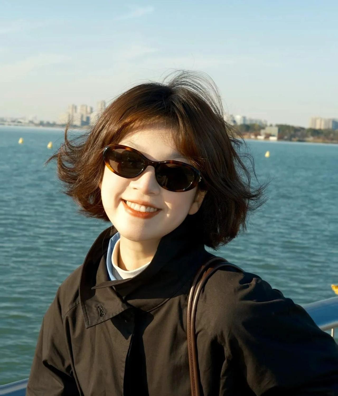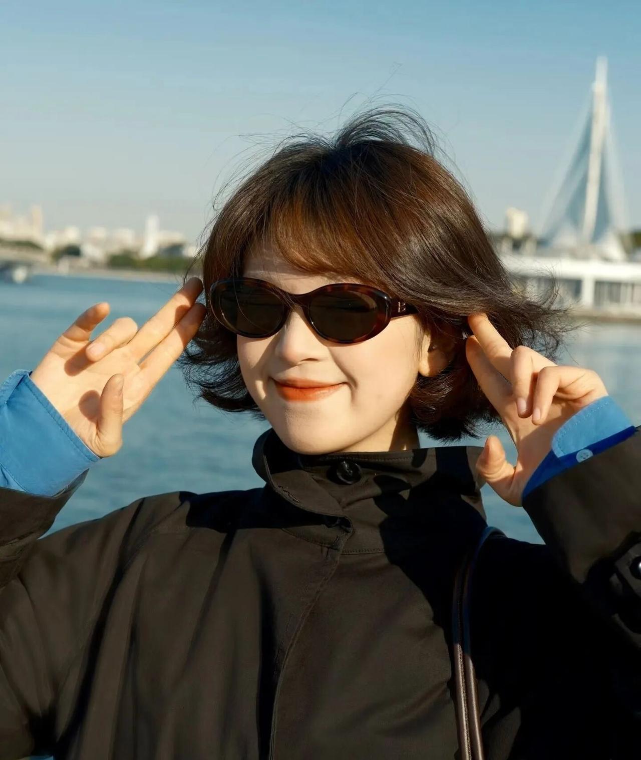 短发女生,阳光明媚的午后,戴上墨镜,享受海风拂面的感觉。休闲啊🌞👓🌊