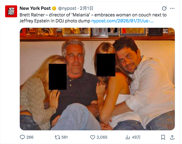 TNABO 好莱坞导演布莱特·拉特纳跟爱泼斯坦合影曝光