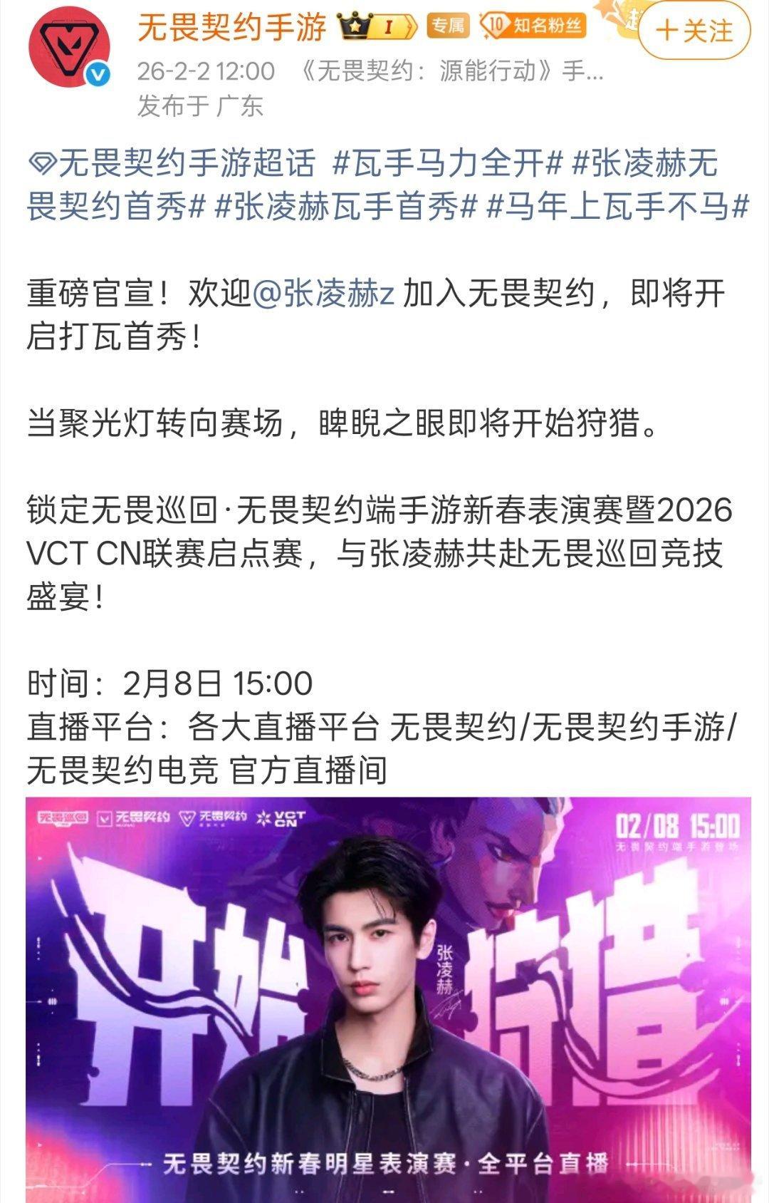 张凌赫官宣无畏契约新春表演赛,燥候打瓦学弟首秀