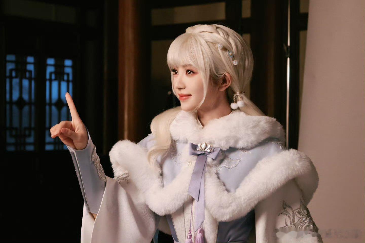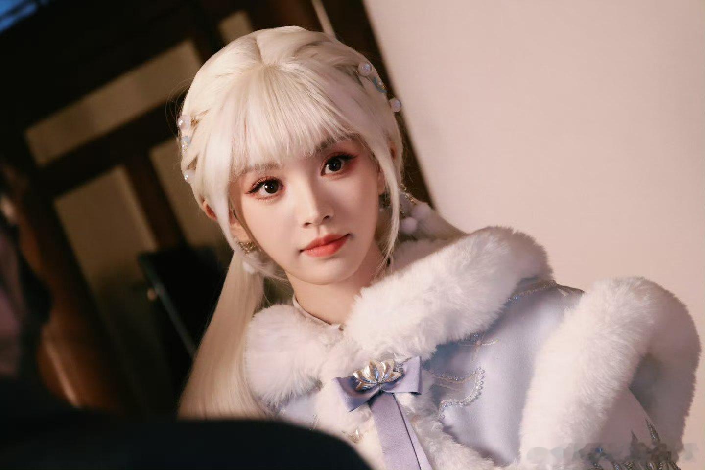 田曦薇最新cos造型,白发双马尾的雪族圣女