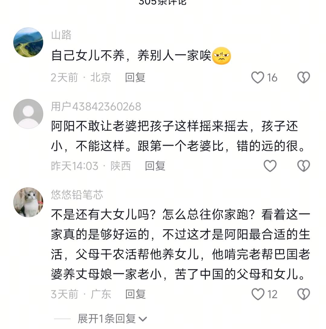 我预料到了,阿阳会在巴基斯坦种地养鸡 也预料到了,他不会放有眼疾女儿的镜头出来了 可万万没想到他的岳母竟然带着。几个小舅子来投奔他,五个人要住一间小房间,真的是万万没想到! 刷到阿阳的视频,我直接郁闷了!本以为跨国婚姻是“巴铁甜宠”剧本,结果全是现实暴击——一边是远在中国、眼睛有疾的大女儿,一边是突然投奔的岳母一家,五六人挤一间房,这日子也太魔幻了吧!说实话,没点定力真扛不住,别人说的“人生就是过关,扛过去就是修行”,放在他这儿太贴切了! 阿阳在巴基斯坦结过两次婚,第一任妻子难产走了,留下个女儿。本来想带女儿在身边照顾,but后来发现孩子眼睛有问题,巴基斯坦的医疗条件跟不上,签证也麻烦,只能送回中国给父母带。说实话,每次看他视频提女儿,都能感觉到他的无奈,毕竟谁不想把孩子带在身边呢? 后来他娶了现任巴铁媳妇,生了个两个月大的儿子,才算有了点安稳日子。他在巴基斯坦种了片菜地,哎呀妈呀,那虫子多的像撒了把芝麻,根本没法好好长菜。旁边搭了个鸡窝,养了十几二十只鸡,日常就是赶鸡、除虫。这天他本来想好好打理菜地,结果朋友说手机丢了要办卡,他只能陪着跑,一折腾就到下午3点多,谁知道回家等着他的是更大的“惊喜”! 推开门的瞬间,我猜阿阳肯定也懵了!岳母带着四个孩子堵在门口,身上还带着点狼狈。一问才知道,岳母丈夫是瘾君子,被二姑发现报警抓了,二姑还动手打了她,把人赶了出来。娘家容不下,只能投奔女儿女婿。 我晕!阿阳家就一间能睡觉的房,五六个人挤着,岳母睡床上,四个孩子直接打地铺。说实话,换谁都得崩溃,但他媳妇居然挺淡定,抱着小儿子逗着玩,还跟岳母聊天。别人说的“境随心转”,大概就是这意思吧,日子再难,一家人在一块儿就踏实? 视频一发,评论区直接炸了!有网友说“你把女儿扔国内啃老,自己在巴养别人一家,良心不会痛吗?”还有人吐槽他媳妇摇孩子的方式不对,跟第一任比差远了。最让我难忘的是一条评论:“大女儿眼睛好了吗?一年没出镜,你到底还记不记得有这个女儿?” 说实话,网友的质疑也不是胡扯,阿阳确实在大女儿的镜头上太吝啬了。但反过来想,他在巴基斯坦也不容易,种地养鸡养家,突然多了五张嘴要喂,压力肯定不小。本来想平衡好两边,but现实哪有那么完美? 总之,我想说的是,其实跨国婚姻就是“互相搭伙过日子”,想做到人人满意根本不可能。但至少多给大女儿更点镜头啊,哪怕拍个父母带她去复查的片段,网友也能放心。另外,岳母一家总不能一直挤着,慢慢帮着找个临时活计,减轻点负担才是长久之计。你说吧? 阿阳故事 巴基斯坦阿阳 阿阳夫妇 阿阳视频 阿阳家日常