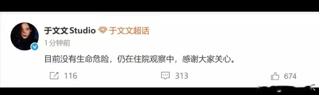 于文文昨晚贵州商演真吓人,唱着歌突然就晕倒了。当时天冷得只有2度,她还穿着露肩礼服,看着都打哆嗦。倒下去那一刻,全场都安静了。 好在有吴克群!他立马跑上台说:“她少唱的,我来帮她唱!” 还主动加唱两首歌,把场子暖了回来。这话说得太实在了,歌手之间就该这样互相搭把手。 回头看看,于文文这行程也太赶了:昨天深圳,今天贵州,明天还有拍摄。身体可不是铁打的啊!工作室后来说人没事,在住院观察。希望这次能好好休息下。 这事挺有意思:一边是明星拼命赶场累倒,一边是同行二话不说帮忙唱。娱乐圈也不全是塑料情嘛!不过还是那句话:身体最重要,别等倒下了才喊停。 于文文报平安 于文文 吴克群帮于文文救场