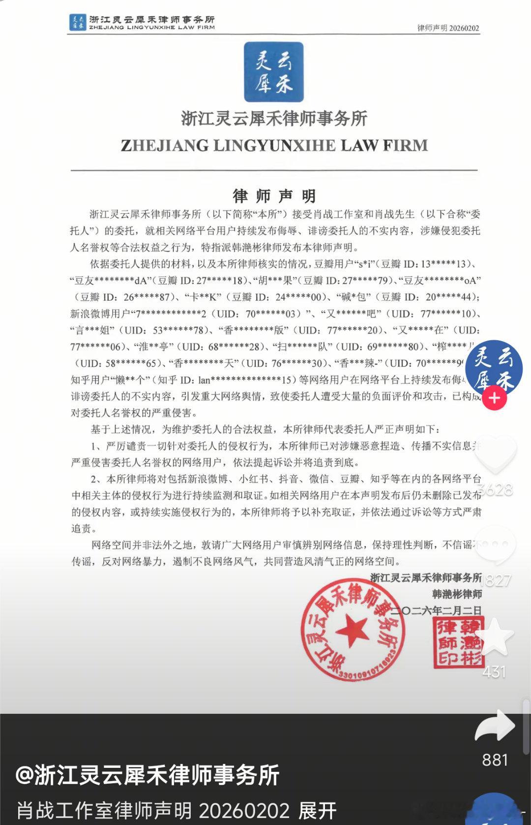 不仅换了律所!这次更是全平台告黑 包括但不限于微博 豆瓣 🍠 🎶 知乎 绿泡泡等平台!支持肖战维权肖战更换律师团队