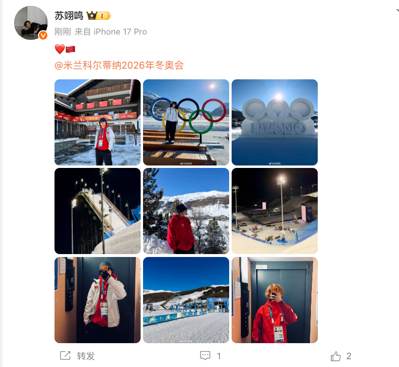 #苏翊鸣晒冬奥村自拍##苏翊鸣米兰冬奥会九宫格#