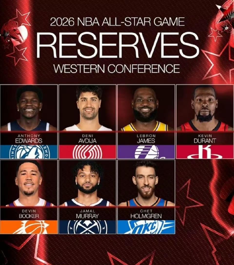 全明星替补,最大亮点是詹姆斯,连续22年去全明星,哪怕是替补也很牛。 老对手杜兰特也在,跟库里一起组成西部王炸。 雷霆小将霍姆格伦首次进全明星。 东部骑士新王米切尔也在。 还得说一句詹姆斯牛逼。[偷笑]
