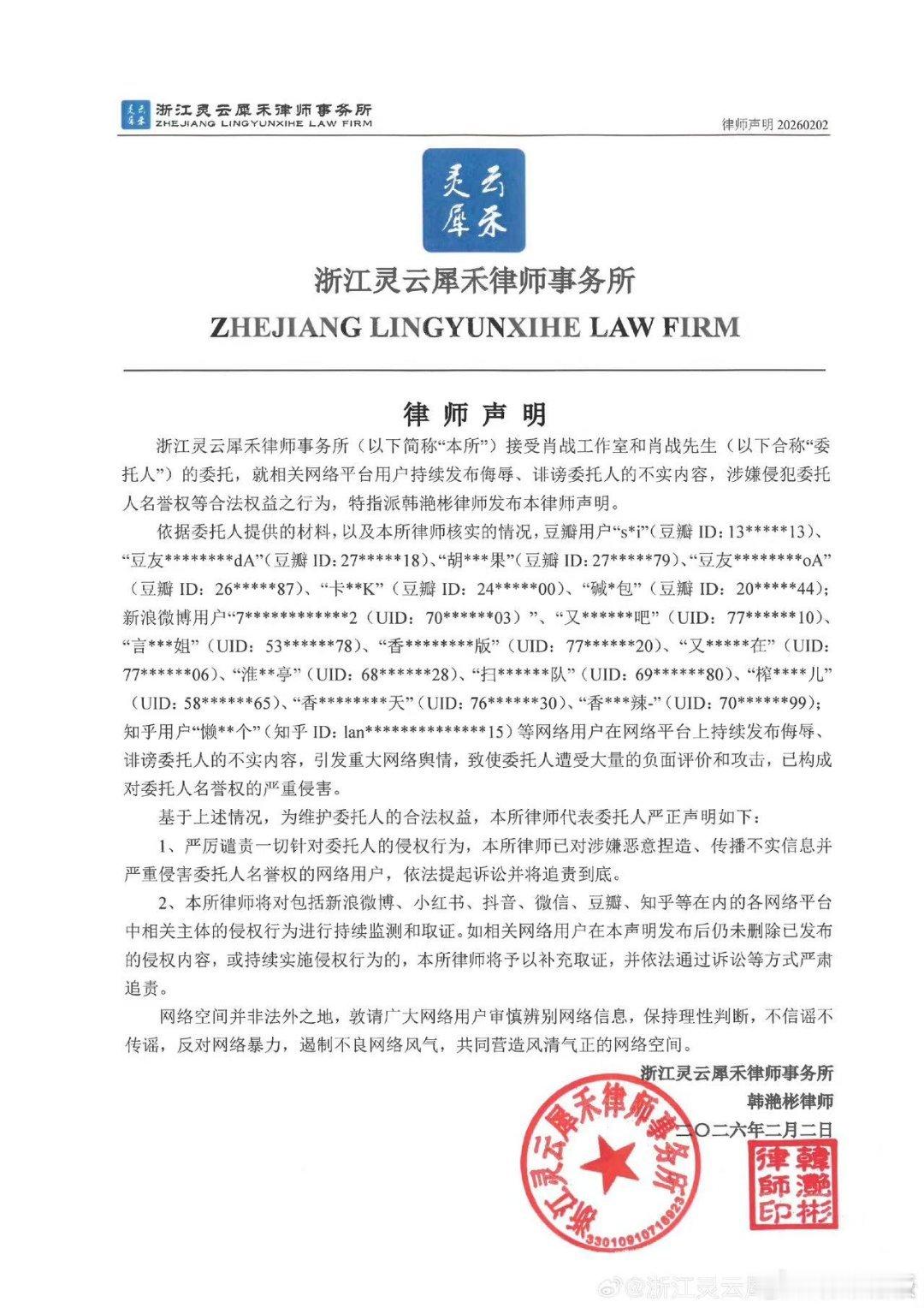 肖战方最新告黑声明肖战工作室最新告黑声明肖战工作室最新告黑声明,支持维权,