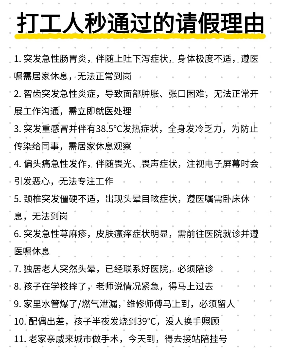 不用辞职请个假就行了十一种请假理由,让领导无法拒绝!