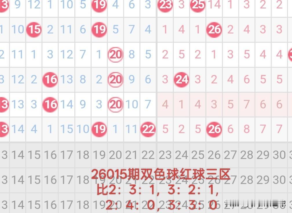 双色球26015期红球三区比的分析 26014期双色球红球三区比1:3:2。 从