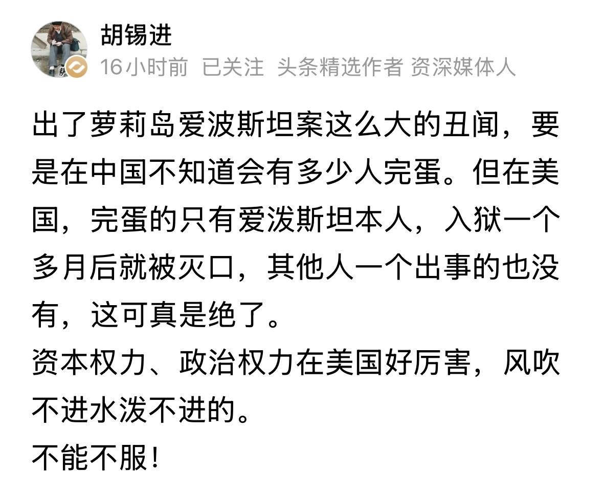 中国不可能出现这种事情,中国没有萝莉岛,也没有爱泼斯坦,太大规模了!