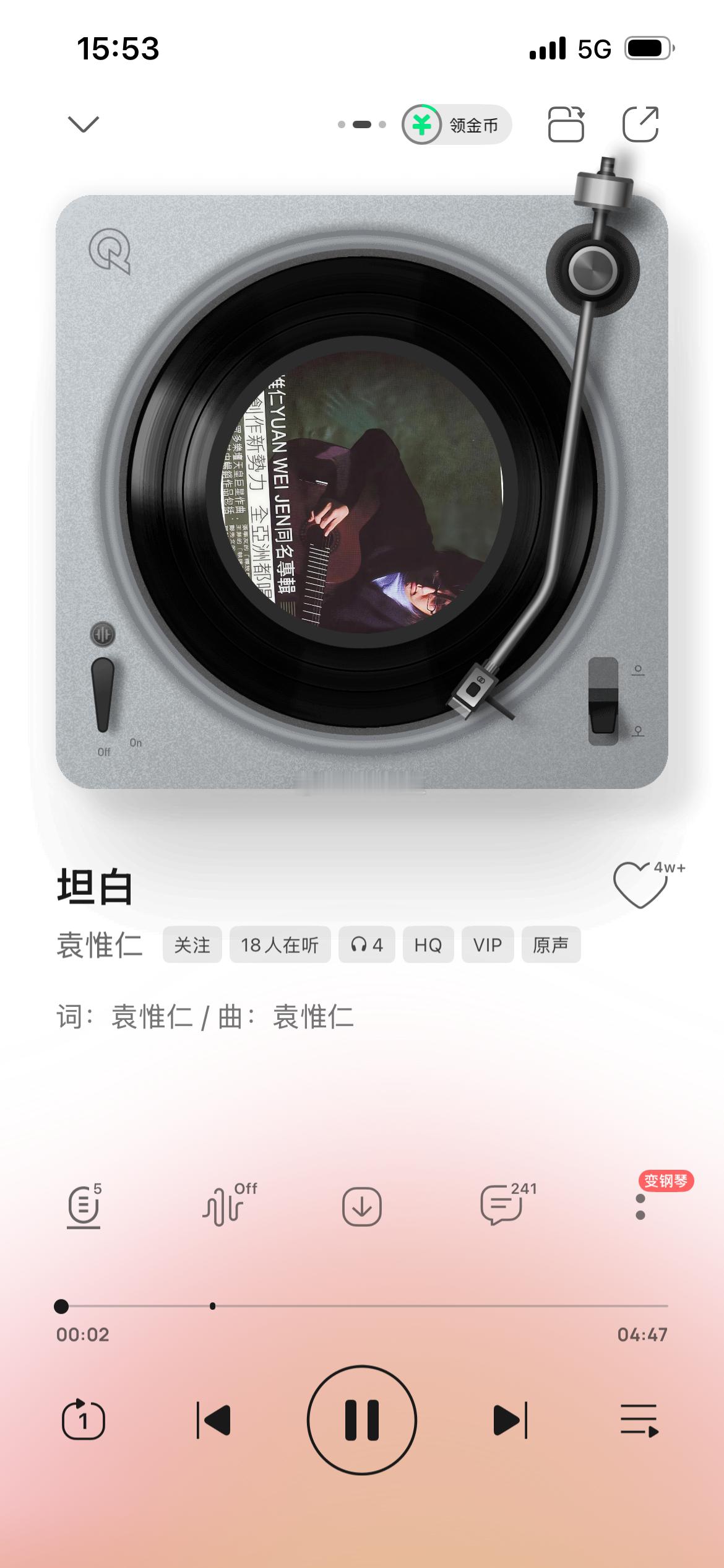 一首《征服》,一首《坦白》。
