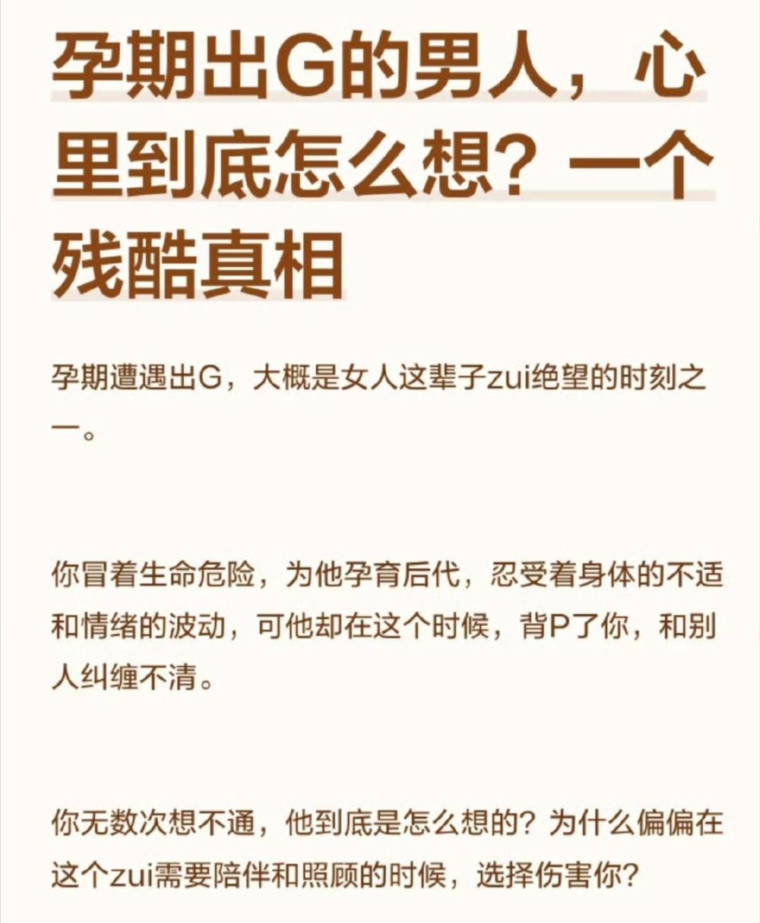 离谱,男子将出轨归咎于妻子孕期总念叨谈钱、自己内心孤独[石化][石化],抱怨妻子打电话只谈钱,把生活压力全甩给对方? 2026年2月1日,杭州35岁男子电台自曝,妻子二胎预产期仅剩40多天,自己却出轨女大学生,坦言抵挡不住对方带来的被崇拜感,如今深陷两难。 一边是即将临盆的孕妻与未出世的孩子,一边是所谓的新鲜感与崇拜感,既然明知愧对家庭满心愧疚,为何还要触碰底线? 孕期本是妻子最脆弱需要陪伴的时刻,难道部分男性真的逃不过孕期出轨的魔咒,所谓的孤独与压力,不过是背叛的借口?出轨 情感出轨 男子的出轨 出轨心理