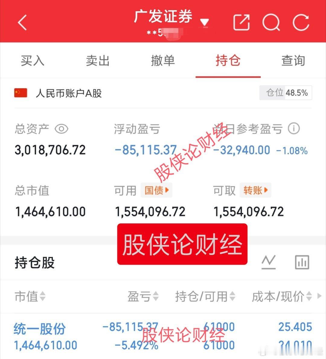 今日持有:统一股份 sh600506[股票]