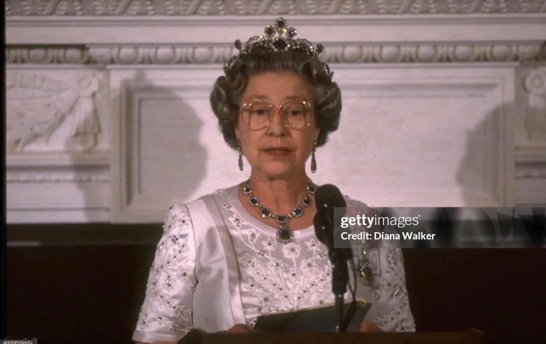 【来自投稿】上个世纪90年代出席晚宴的英国伊丽莎白二世女王